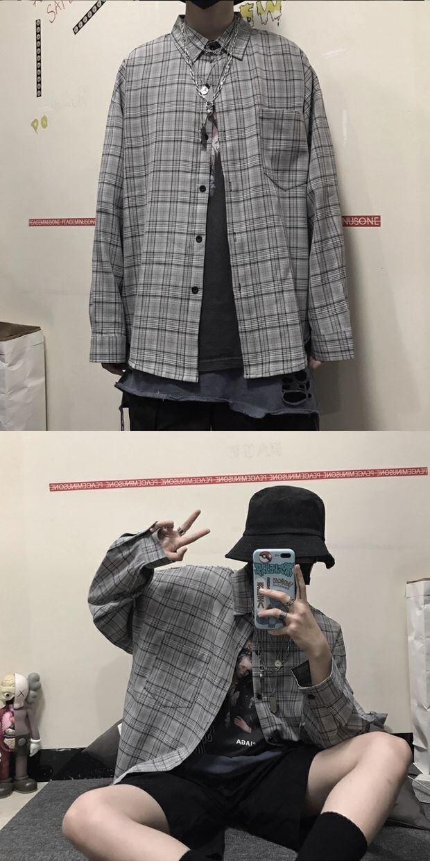 シャツ レディースメンズオータム韓国ファッショントレンドスタイルスタンダード格子柄ルーズカジュアルジャケット ロング レトロ ストリート 原宿 秋物 長袖 デーモン3206780