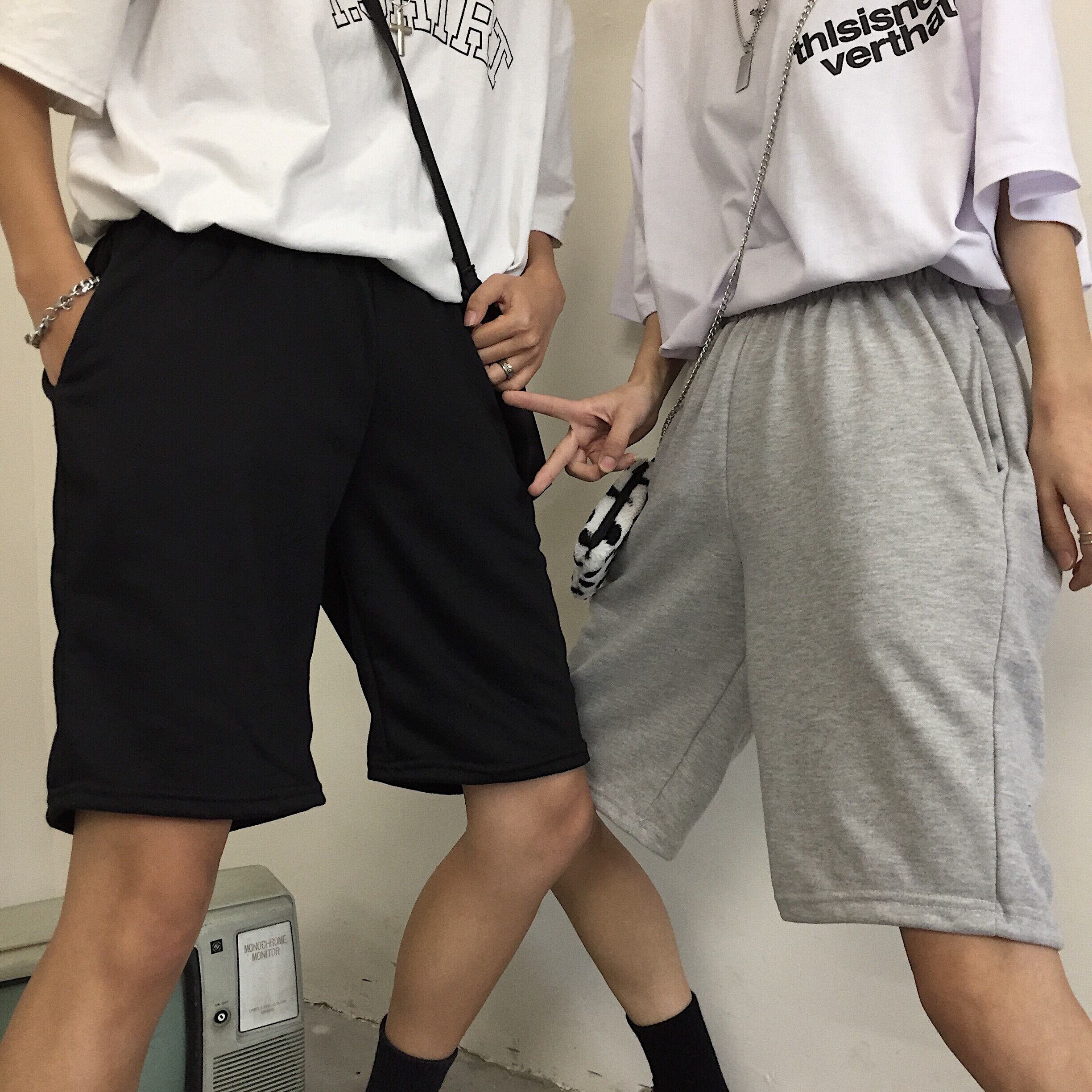 スプリング夏服韓国ファッショントレンドスタイルソリッド カラースタンダードカジュアルパンツ ルーズショーツ レトロ 原宿 春物 夏物 ソリッドカラー デーモン8007849