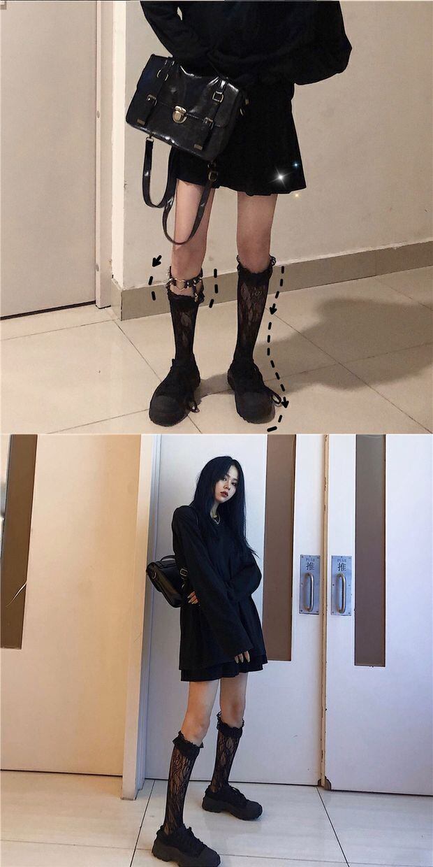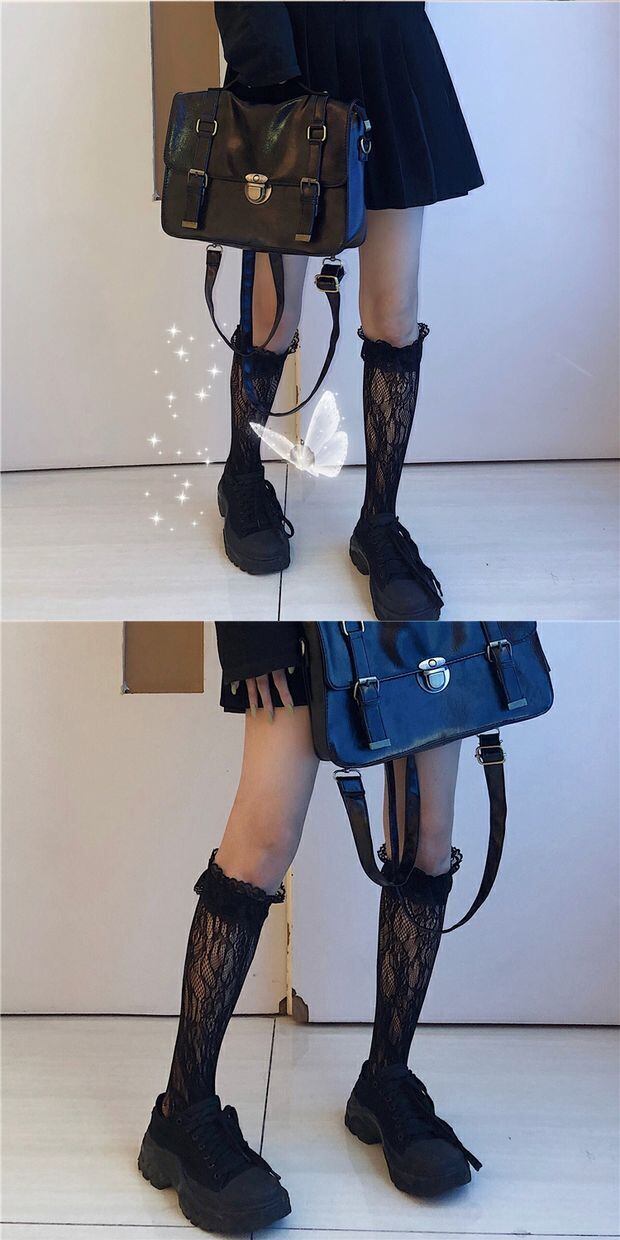 トレンドレッドダークスタンダードレースソックス ワイルドバックル レトロ 原宿 タイツ ストッキング デーモン5026224