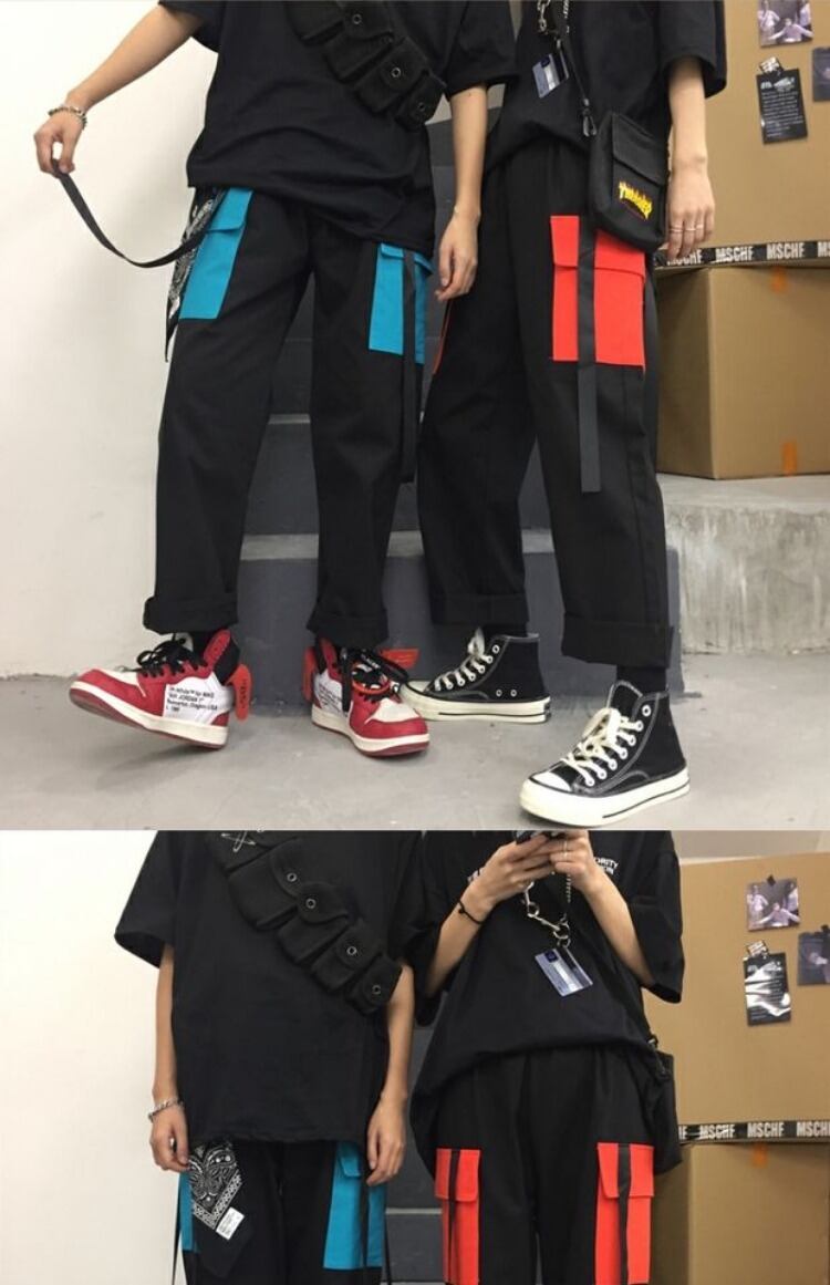 スプリング韓国ファッショントレンドカラースタンダードポケットオーバーオール ルーズカジュアルパンツ メンズレディース レトロ ストリート 原宿 春物 ボーイズ スタイル デーモン9195634