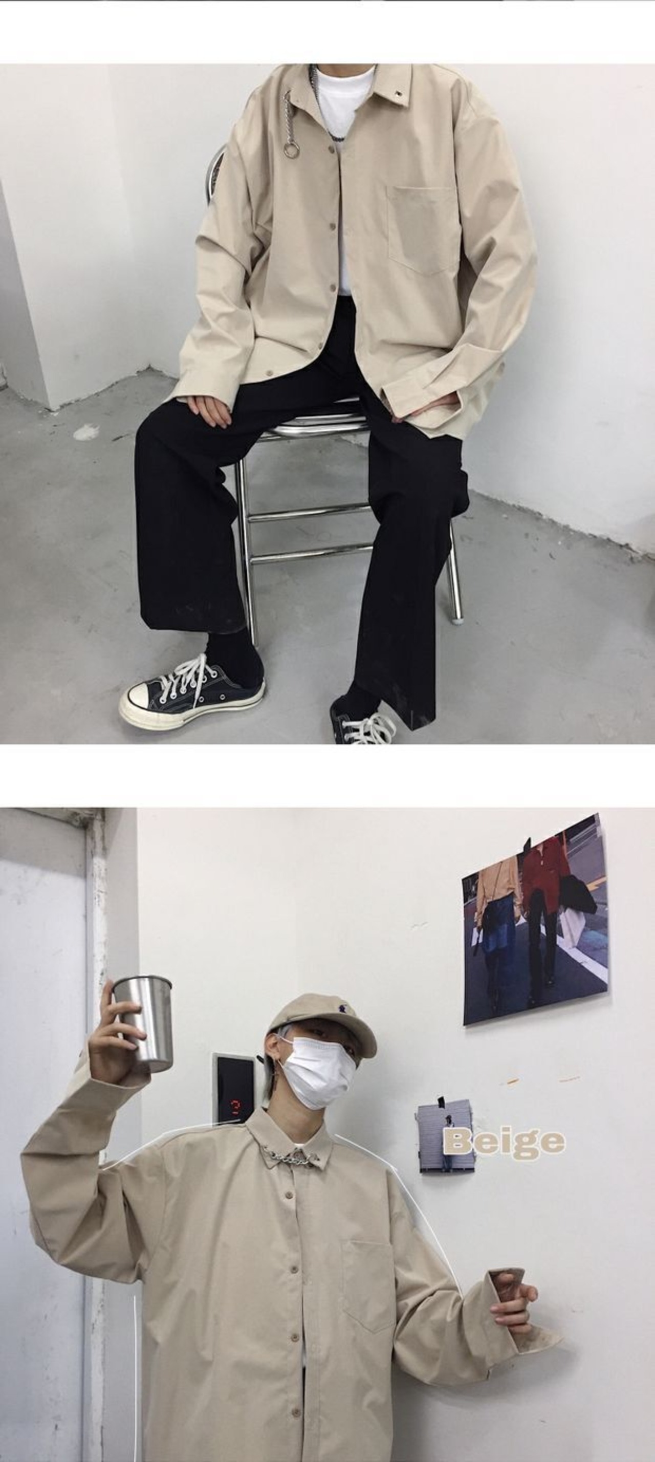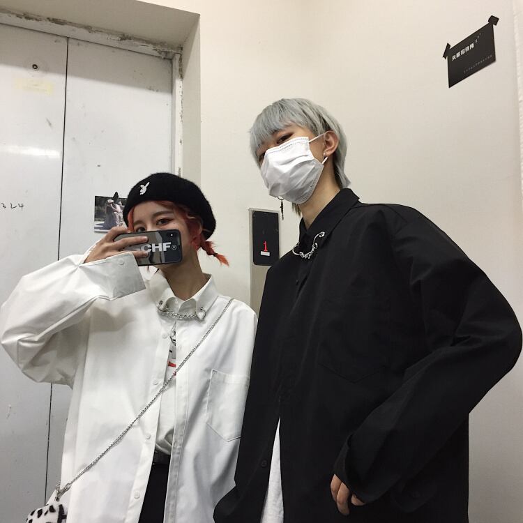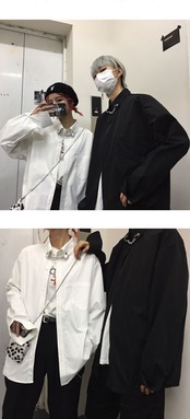 韓国ファッショントレンドスタイルスタンダードチェーン シャツ ルーズカジュアルジャケット ロング レトロ ストリート 原宿 長袖 デーモン1376461