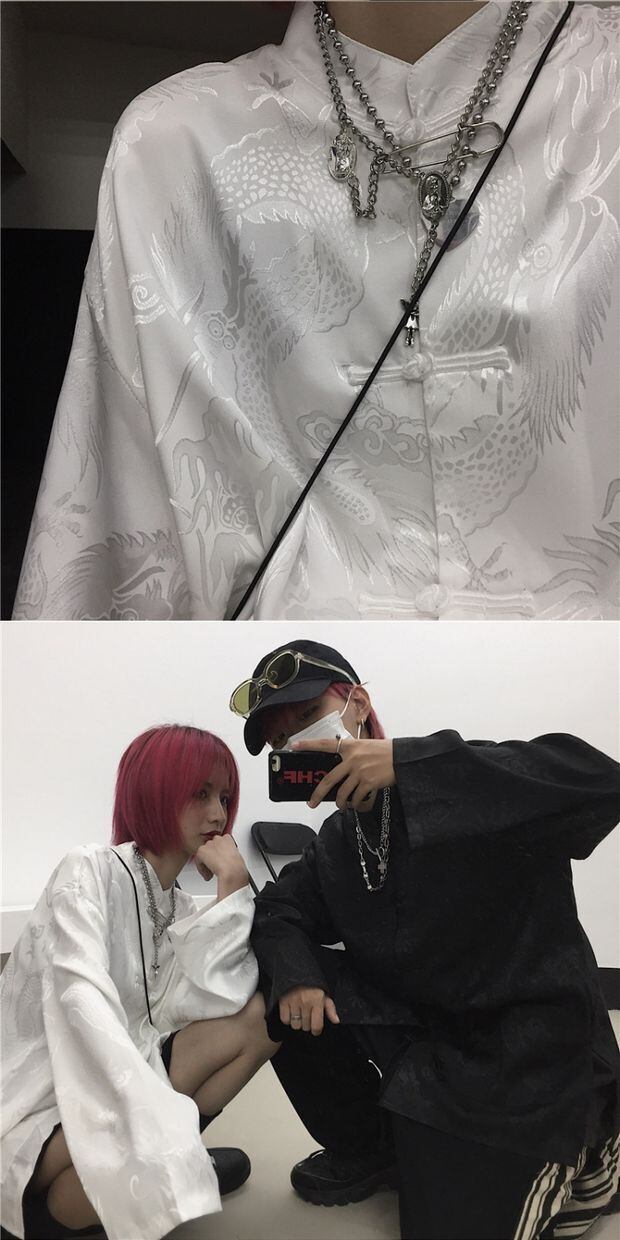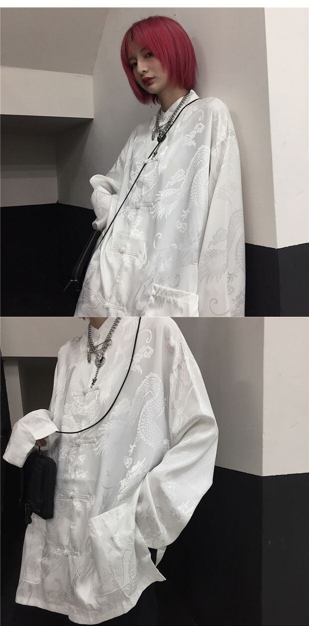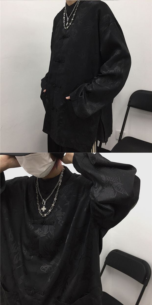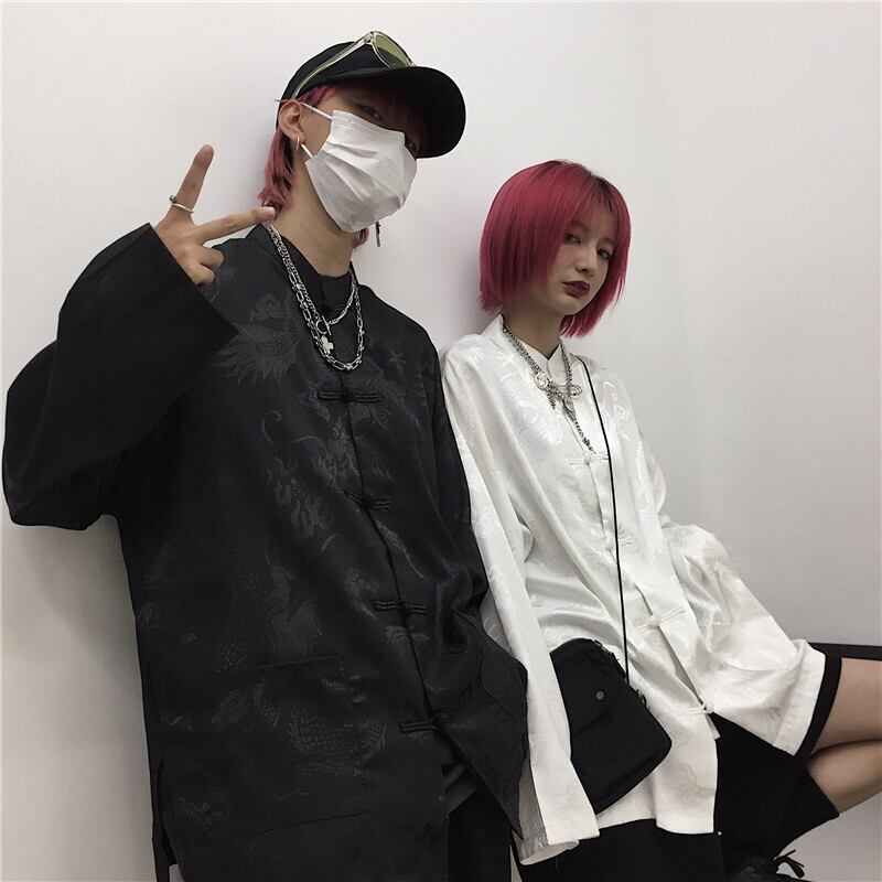 シャツ レディース韓国ファッショントレンドスタイルマオカラーダークジャカードルーズボタンコート ジャケット レトロ 原宿 デーモン1053545