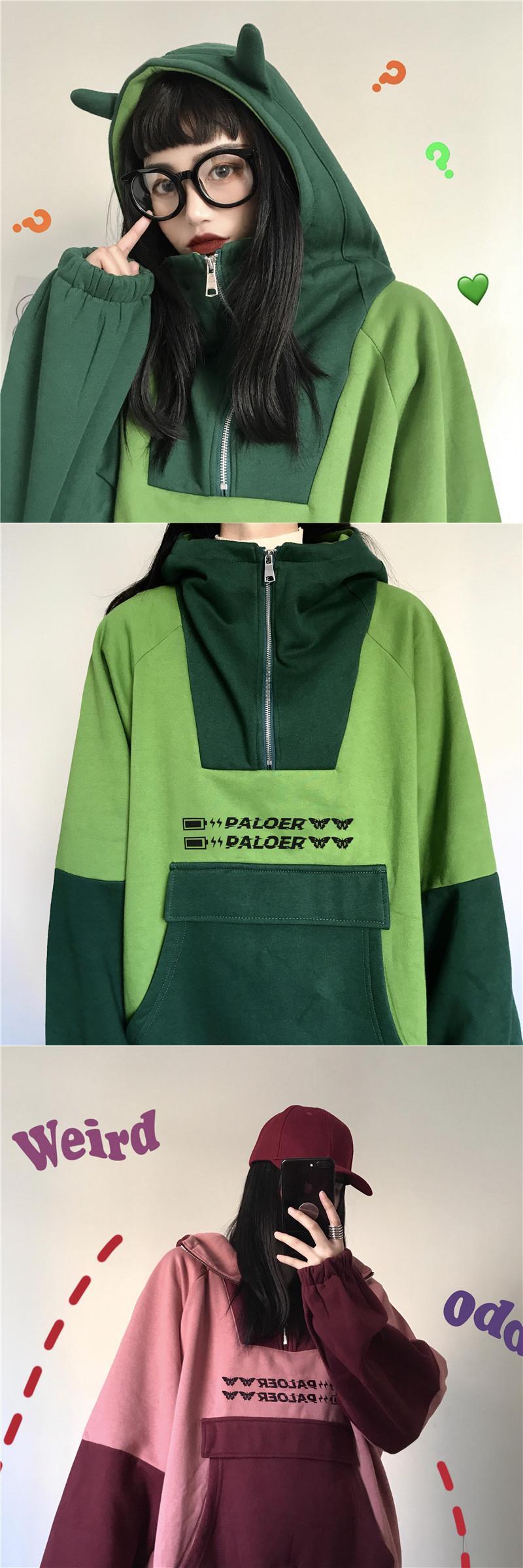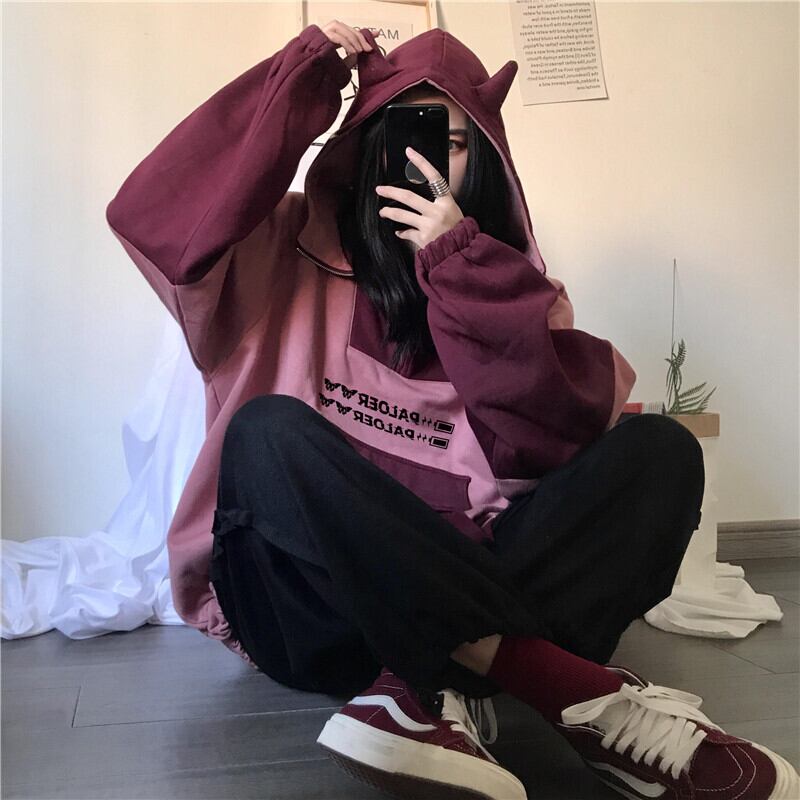 セーター女性の春と秋のinsレトロ漫画耳フード付き長袖シャツ緩いBFカジュアル学生ジャケット デーモン3816173