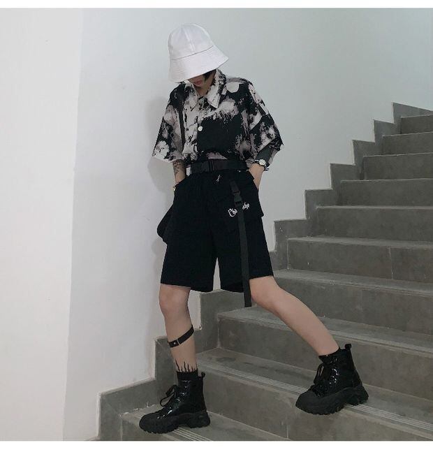 夏服韓国ファッションスタイルスタンダードポケットオーバーオール カジュアルルーズショーツ レトロ ストリート 原宿 夏物 デーモン4851464
