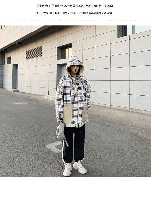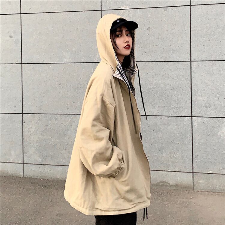スプリング韓国ファッションオーバーサイズコート スタイルスタンダードジャケット ルーズフードトップス レトロ 原宿 春物 ステッチ デーモン6328610