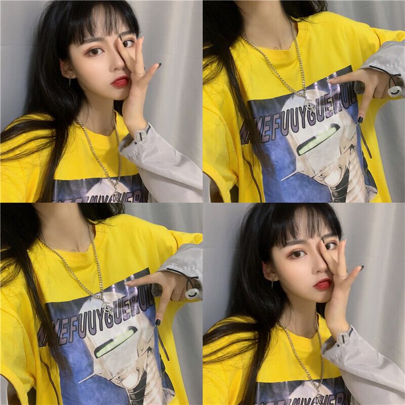 トレンドプリント柄スタンダードゆったりシャツ Tシャツ ロング レトロ 原宿 ボーイズ 長袖 デーモン3391598