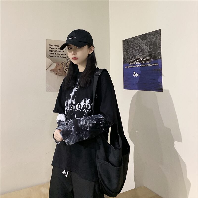 ゆったりシャツ レディースオータムウィンター韓国ファッショントレンドスタンダードルーズカジュアルTシャツ ブラックトップス ロング レトロ 秋物 冬物 スタイル 長袖 デーモン4115056
