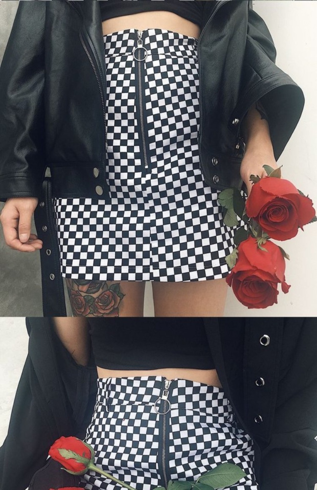 夏INS原宿スタイルレトロレース白黒チェッカーリングスカートAワードスカートスカートレディース デーモン5699270
