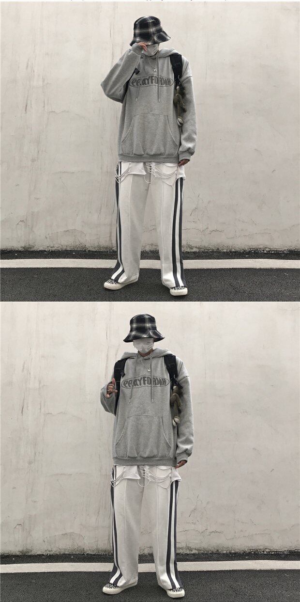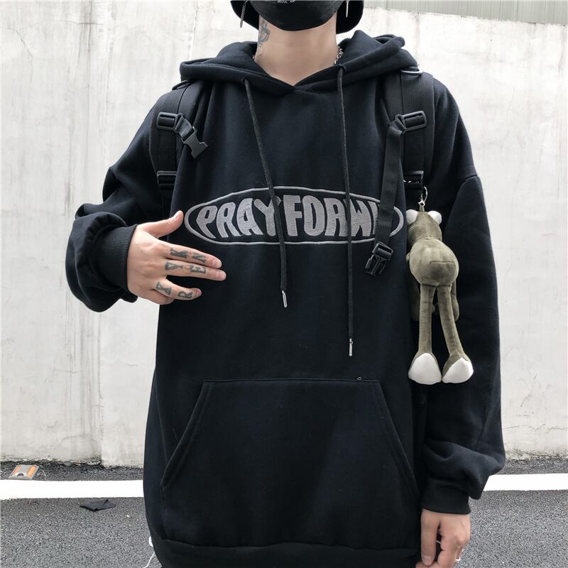 オータムウィンター韓国ファッショントレンドスタンダード刺繍ルーズ厚みフードセーター メンズレディース レトロ 秋物 冬物 ボーイズ スタイル デーモン4951486