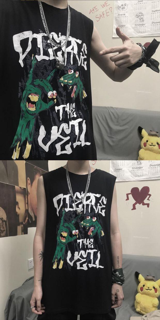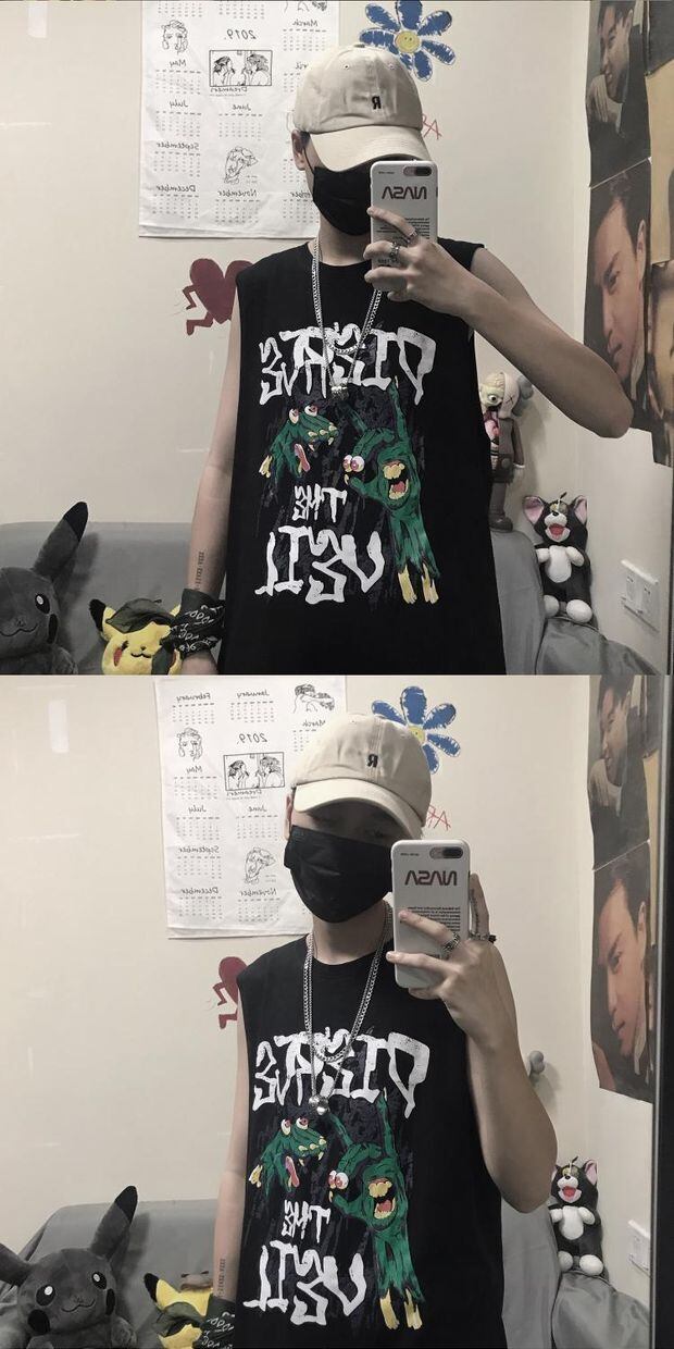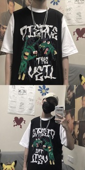 ノースリーブTシャツ夏服韓国ファッショントレンドスタンダードプリントルーズジャケット レトロ 夏物 ボーイズ スタイル デーモン9851308