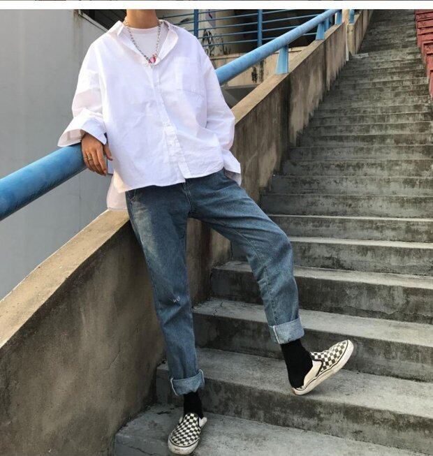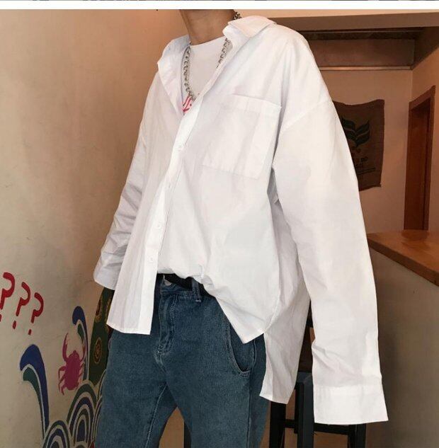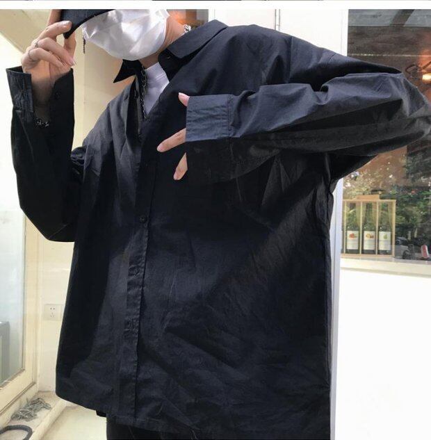 原宿 ルーズ シンプル ワイルド ベーシック ソリッド カラー 長袖シャツ ベース シャツ 男女兼用 デーモン5572732