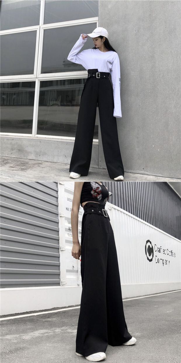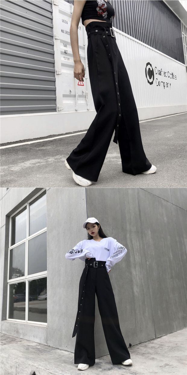 スプリング韓国ファッションスタイルソリッド カラールーズ薄手ワイドレッグパンツ 原宿 春物 ワイドパンツ ソリッドカラー デーモン9010625