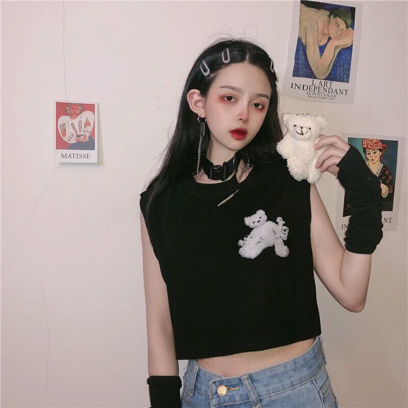 ノースリーブTシャツ レディース韓国ファッショントレンドスタイルプリント柄ルーズカジュアルショートトップス 大人ガーリー スウィート キュート 原宿 デーモン6422159