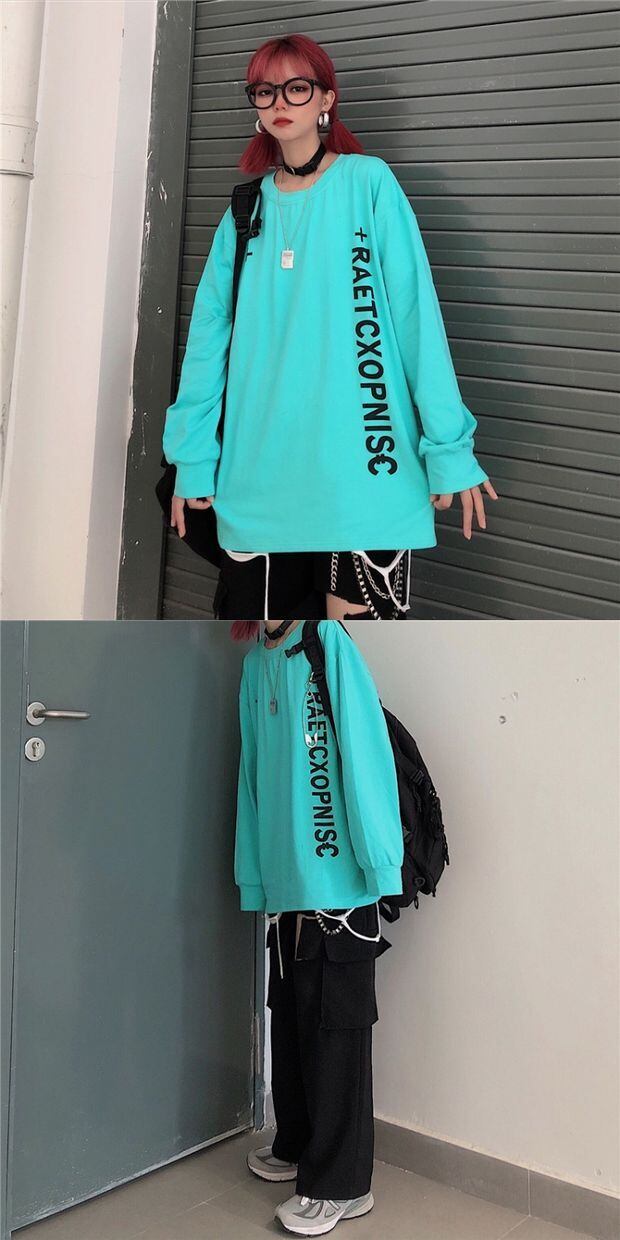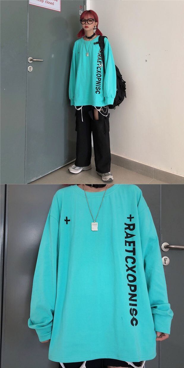 ゆったりシャツ レディーススプリング秋物韓国ファッショントレンドスタイルプリントルーズTシャツ ロング 原宿 春物 オータム 長袖 デーモン0753641
