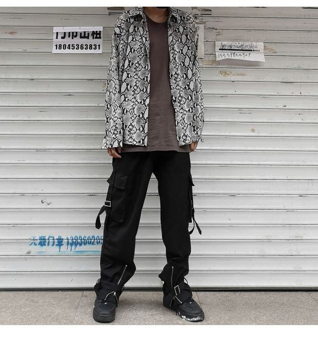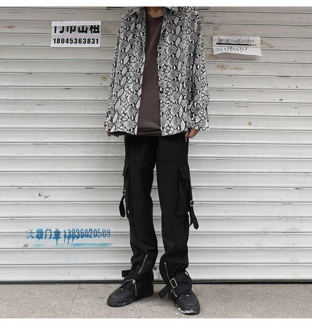 シャツ レディース韓国ファッショントレンドスタイルスタンダードスネークパターンルーズカジュアルジャケット ロング レトロ 原宿 長袖 デーモン4477537