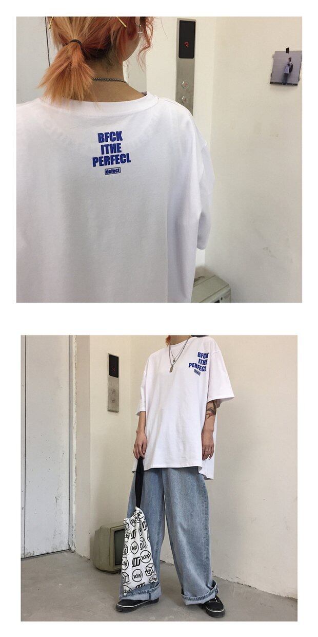 ホワイトTシャツシャツ レディース夏服韓国ファッショントレンドスタンダードプリントルーズゆったりトップス レトロ 夏物 ボーイズ スタイル デーモン2439968