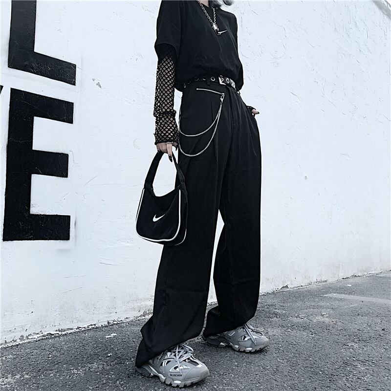 ブラックカジュアルパンツ レディース夏服韓国ファッショントレンドメンズルーズスタンダード レトロ 夏物 ワイドレッグ ワイドパンツ Museum5108760