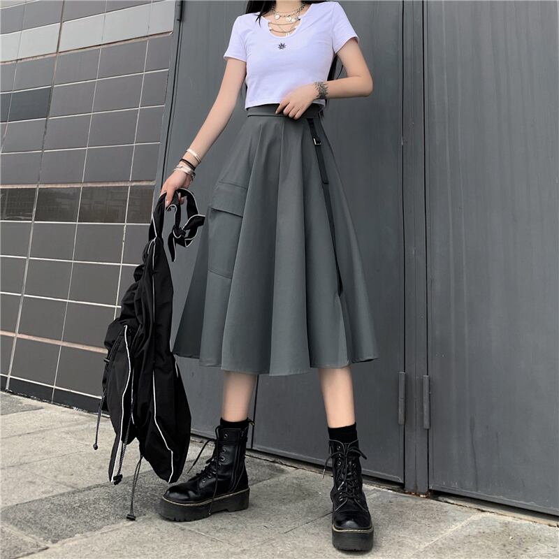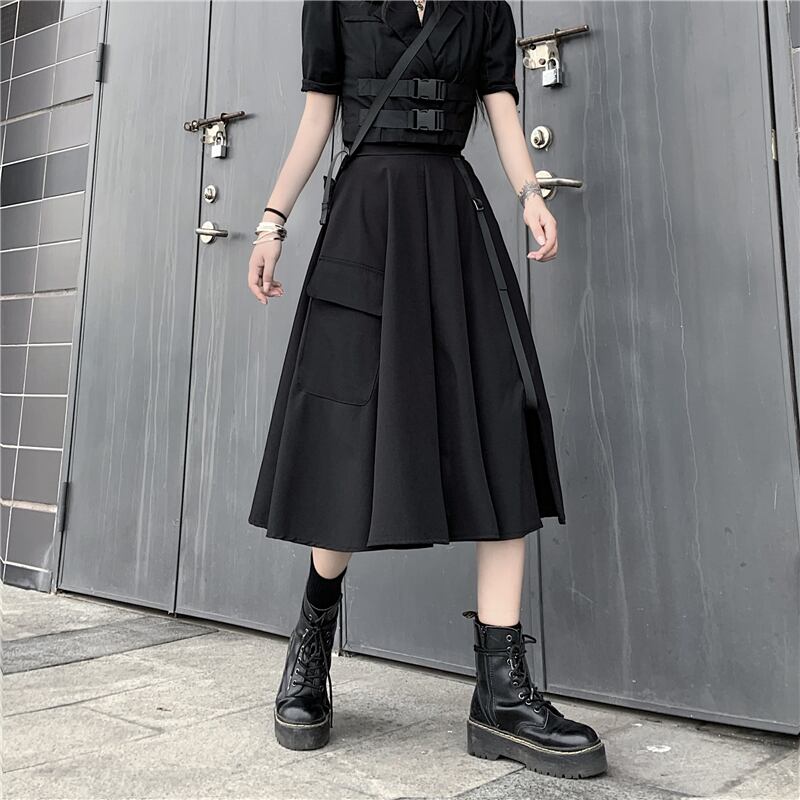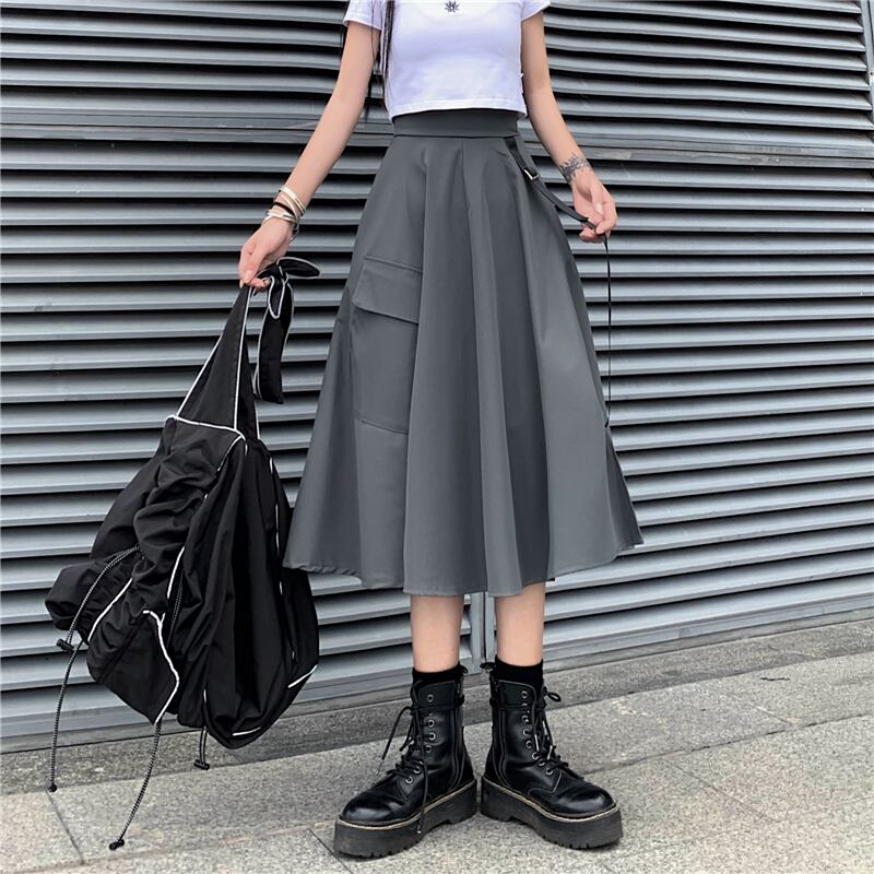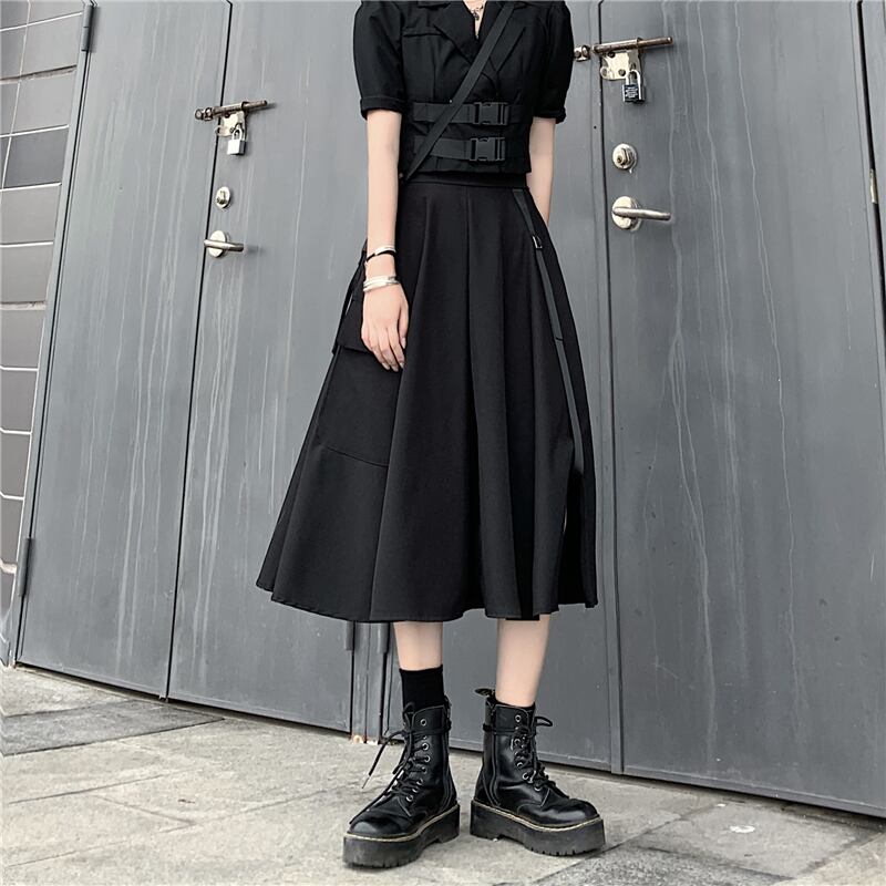 ブラックスカート レディース夏服韓国ファッショントレンドポケットロングAライン 夏物 スタイル Museum2754734