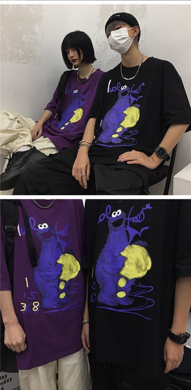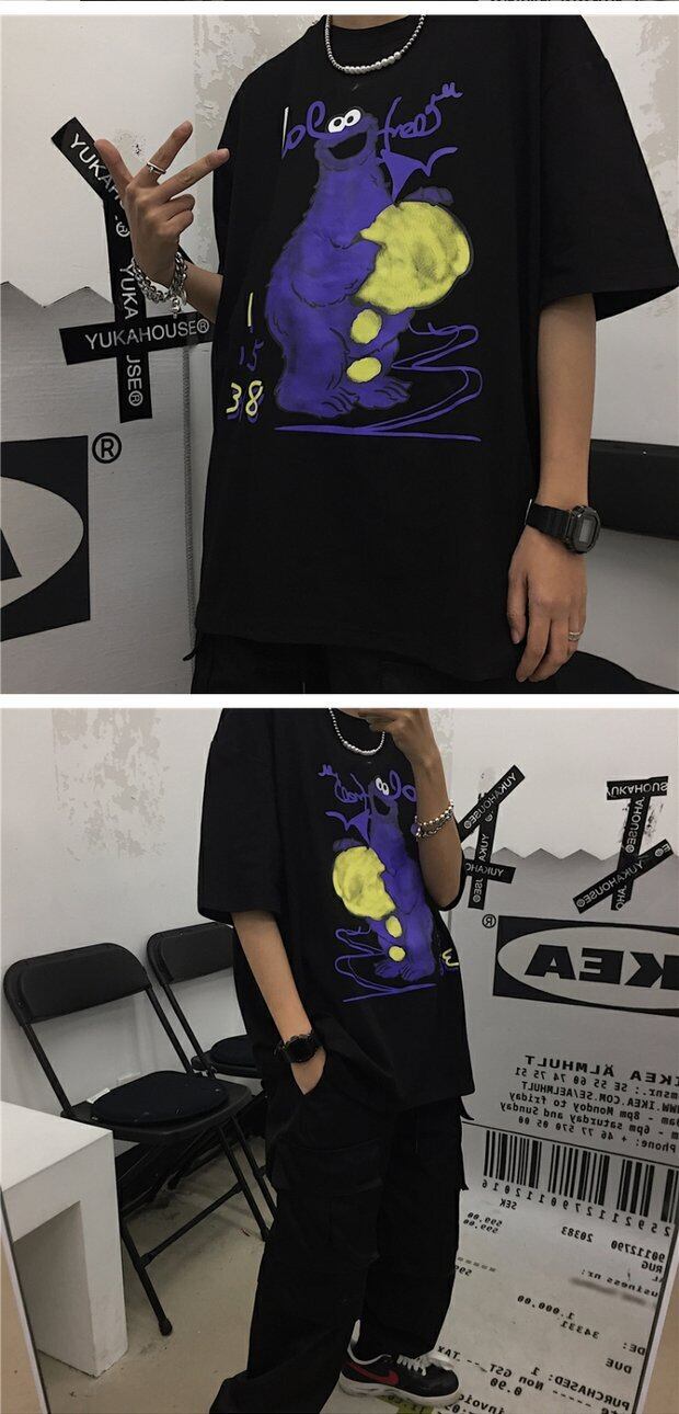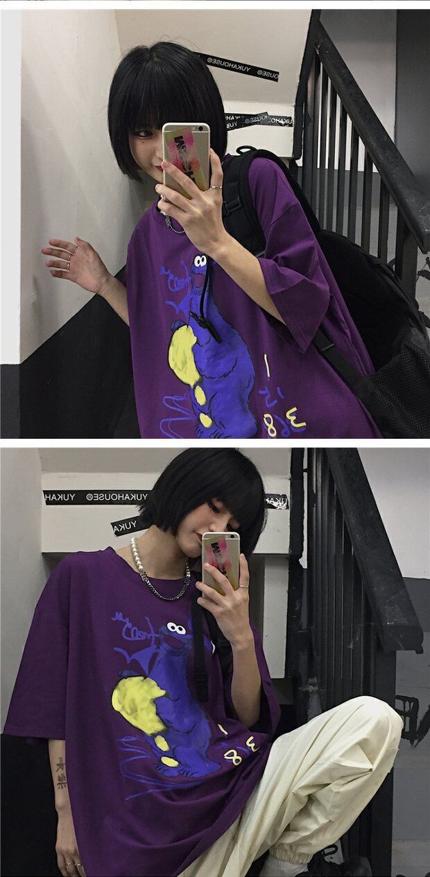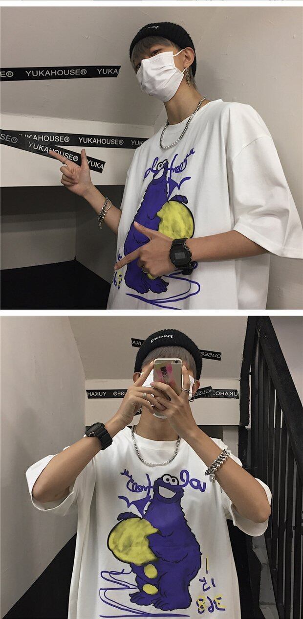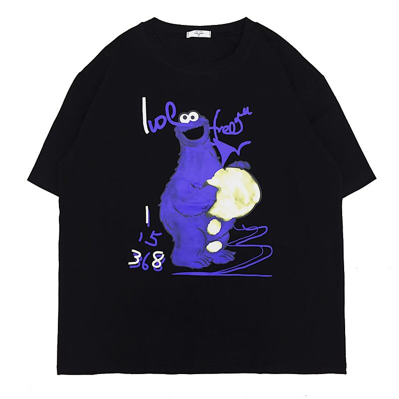 ホワイトTシャツシャツ レディース夏服韓国ファッショントレンドスタンダードプリントルーズスタイルゆったりトップス レトロ 夏物 ボーイズ デーモン6794302