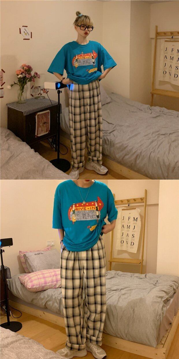 格子柄パンツ レディース夏服韓国ファッショントレンドスタンダードカジュアルハイウェストウェストルーズワイドレッグ レトロ 夏物 ワイドパンツ スタイル ウエスト デーモン7271240