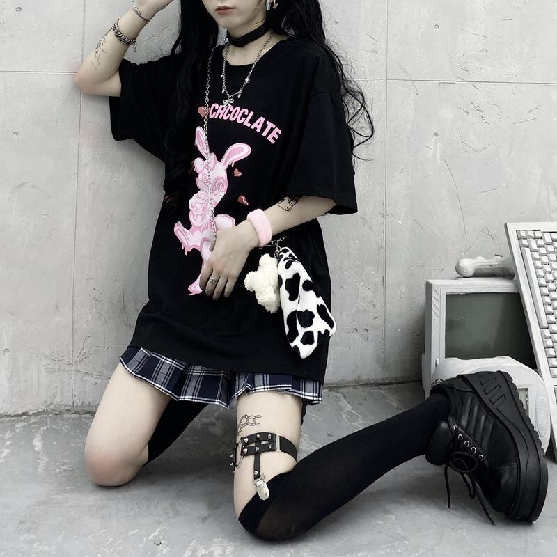Tシャツレディース夏服韓国ファッショントレンドスタンダードプリント柄ルーズブラックトップス レトロ 夏物 ボーイズ スタイル デーモン7178792