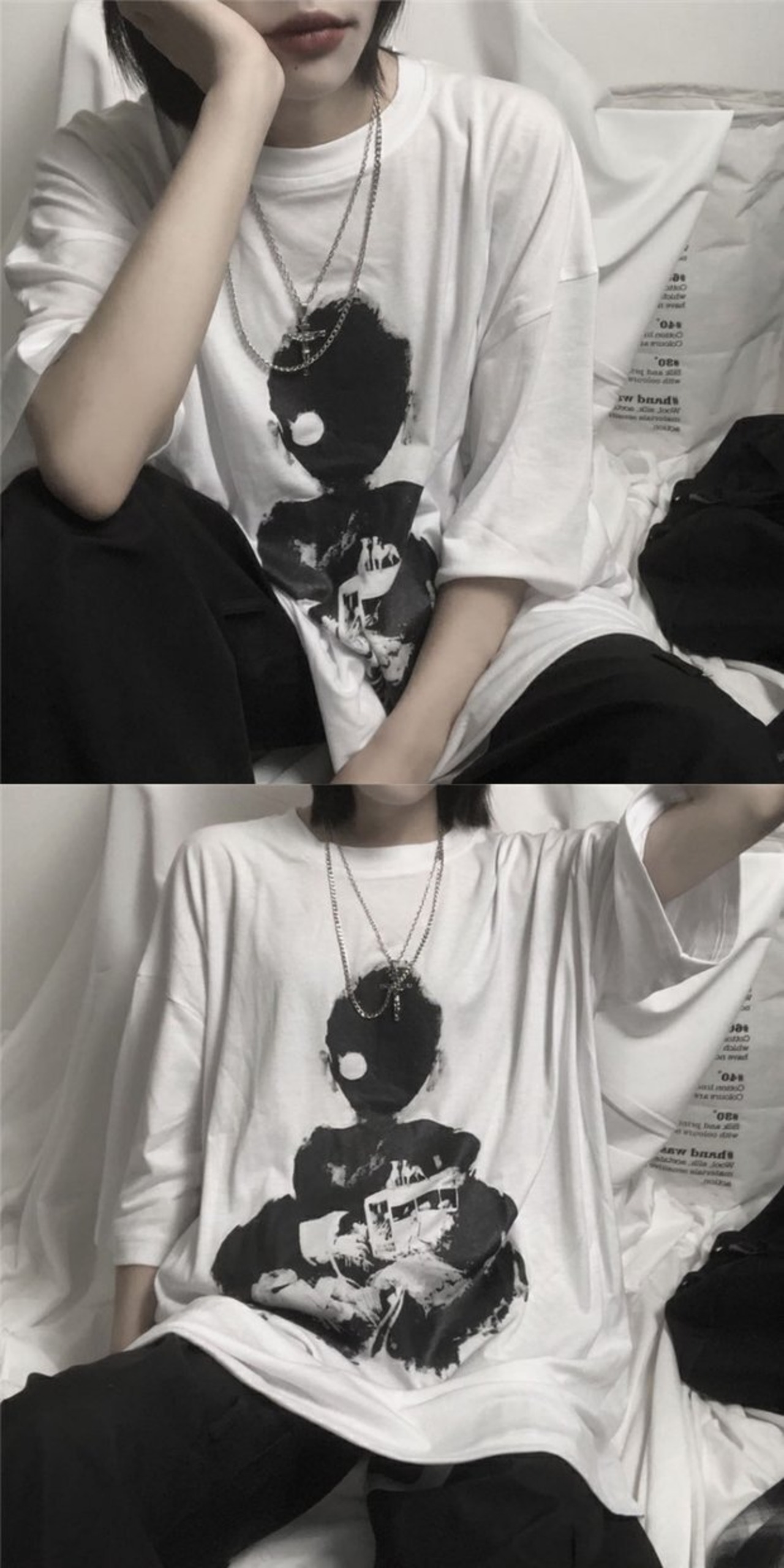 Tシャツシャツ レディース夏服韓国ファッショントレンドスタイルスタンダードプリントルーズゆったりホワイトトップス レトロ 原宿 夏物 ボーイズ デーモン9384952