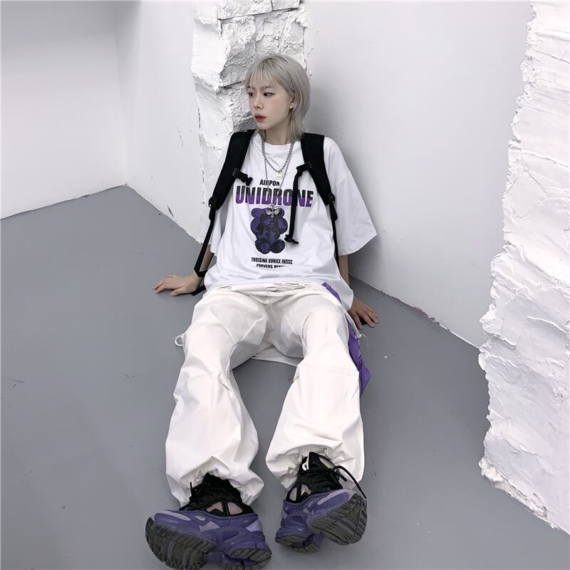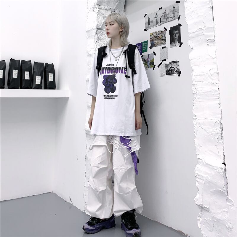スリーブTシャツレディース夏服韓国ファッショントレンドスタイルスタンダードプリントルーズホワイトトップス 半袖 レトロ ハーフスリーブ 原宿 夏物 ボーイズ デーモン1420323