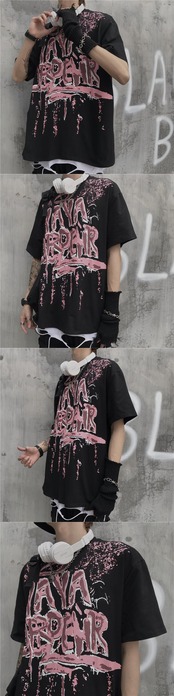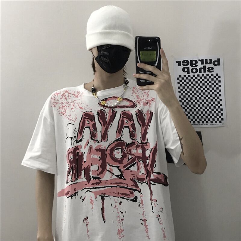 ホワイトTシャツシャツ レディース夏服韓国ファッショントレンドスタンダードプリント柄ルーズゆったり レトロ 夏物 デーモン3831256