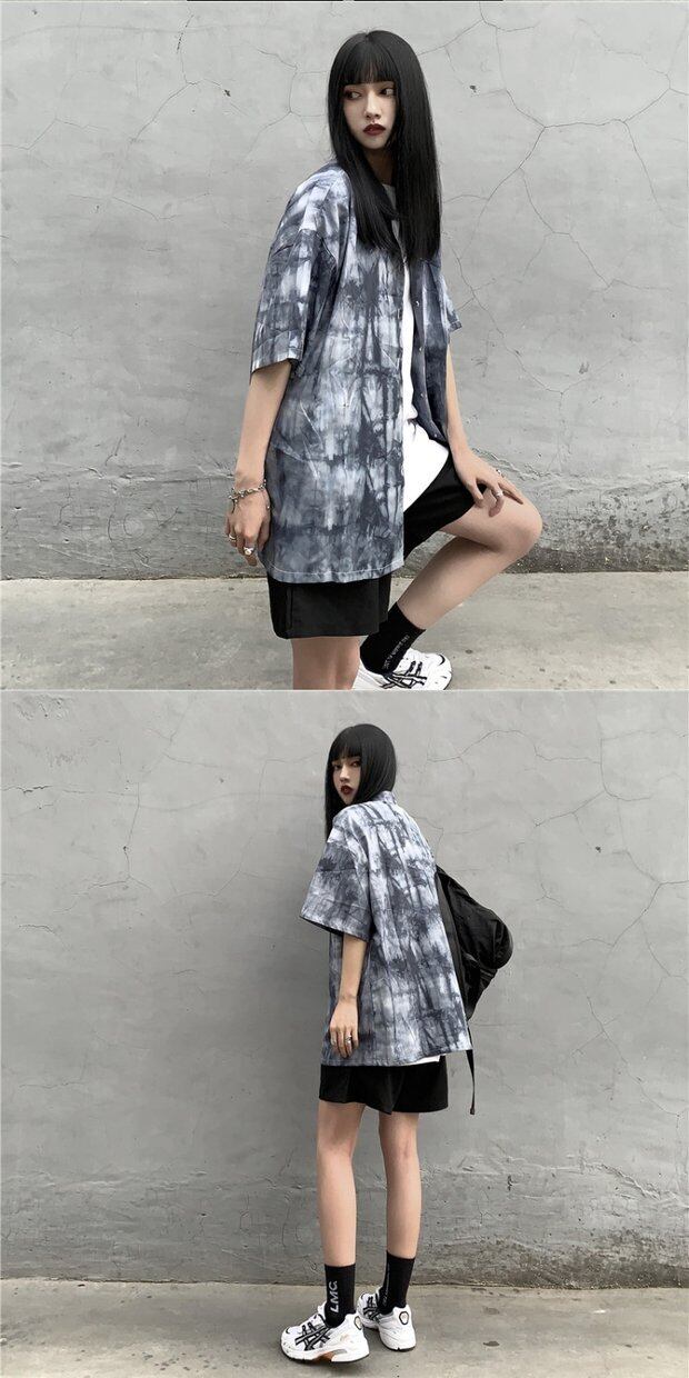 シャツ レディース夏服韓国ファッショントレンドスタンダードルーズカジュアルジャケット コート レトロ ストリート 夏物 ボーイズ スタイル デーモン9124206