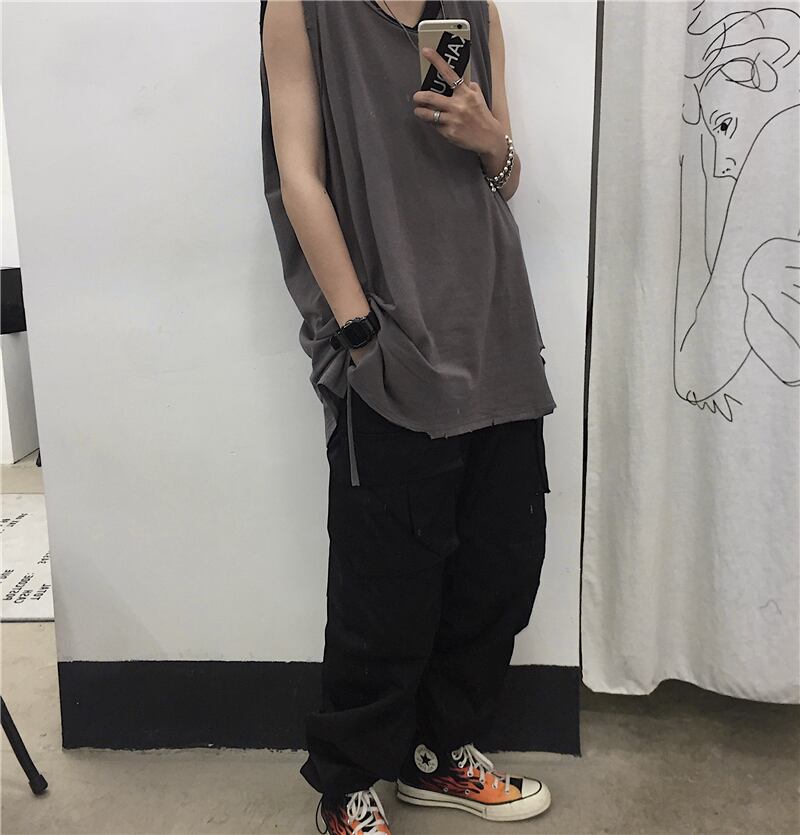 レディース夏服韓国ファッショントレンドスタンダードソリッド カラールーズゆったりシャツ ノースリーブTシャツ レトロ 夏物 ソリッドカラー デーモン2593828