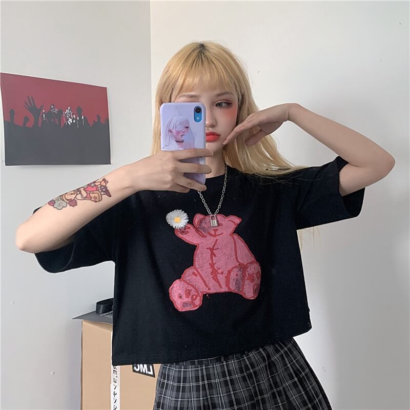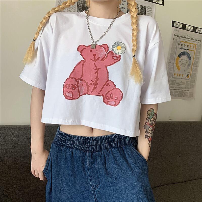 ショートTシャツレディース夏服韓国ファッショントレンドプリント柄ホワイトジャケット ルーズ 夏物 スタイル デーモン5767212