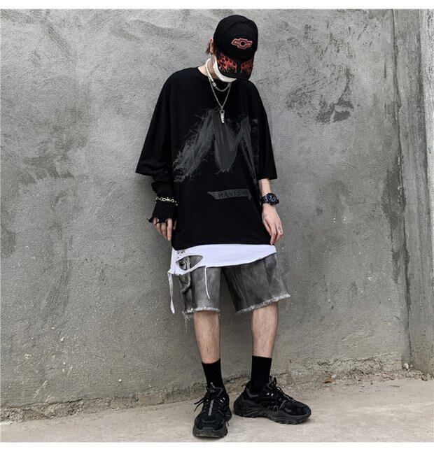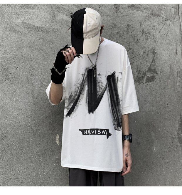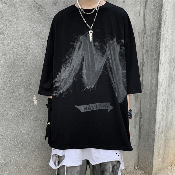 Tシャツシャツ レディース夏服韓国ファッショントレンドスタンダードプリント柄ルーズゆったりホワイトトップス レトロ ストリート 夏物 スタイル デーモン6086506