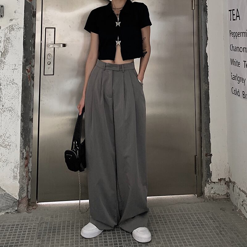 ショートトップス レディース夏服韓国ファッショントレンドジッパー半袖スリーブ薄手ブラックTシャツ ハーフスリーブ 夏物 デーモン4182520