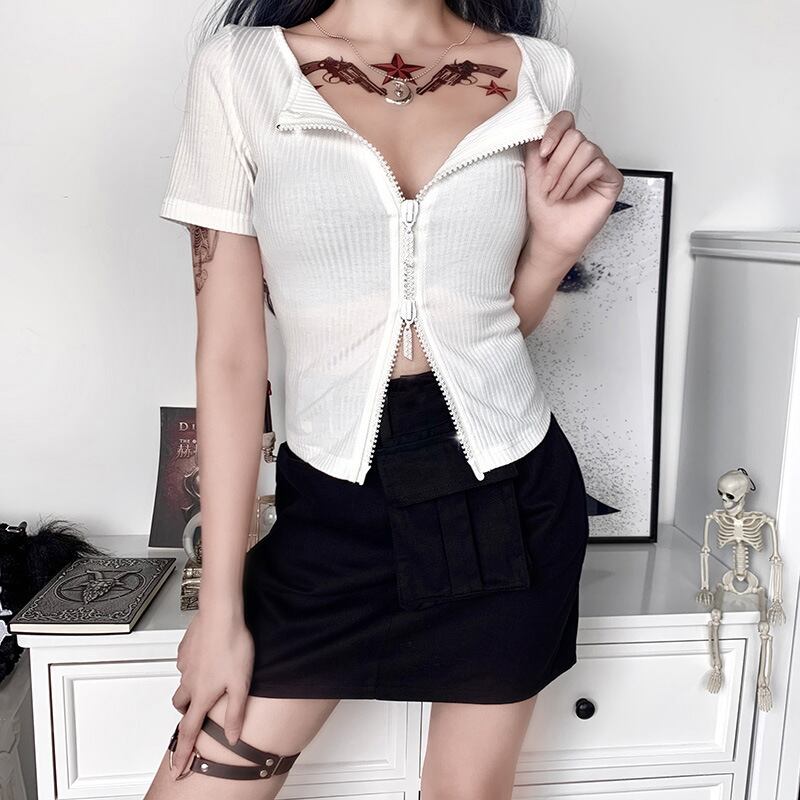 ショートカーディガンクロップド夏服カラーダブルジッパートップス 夏物 シルク YU4899928