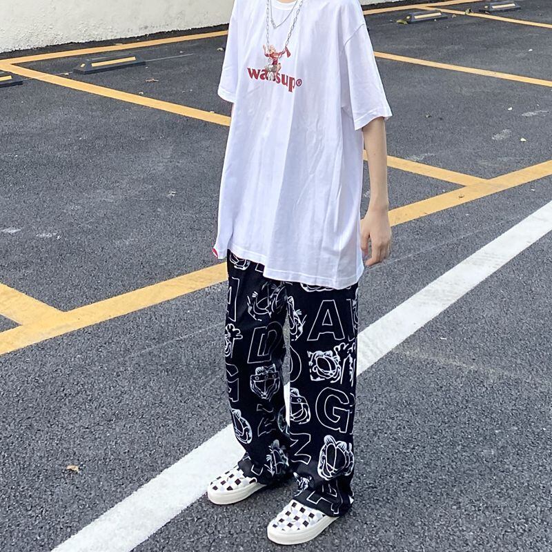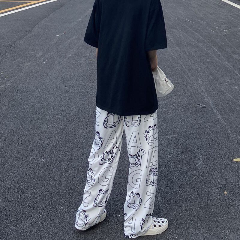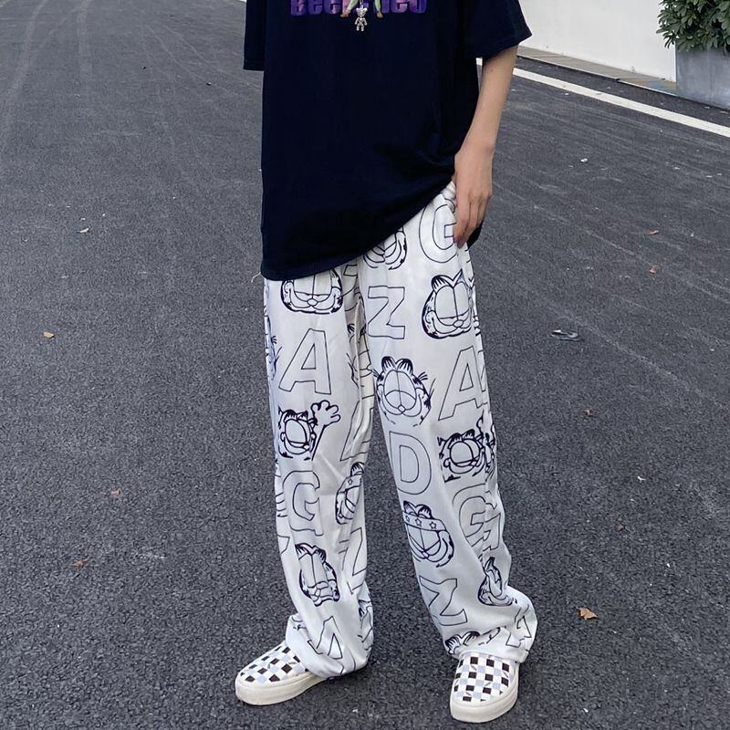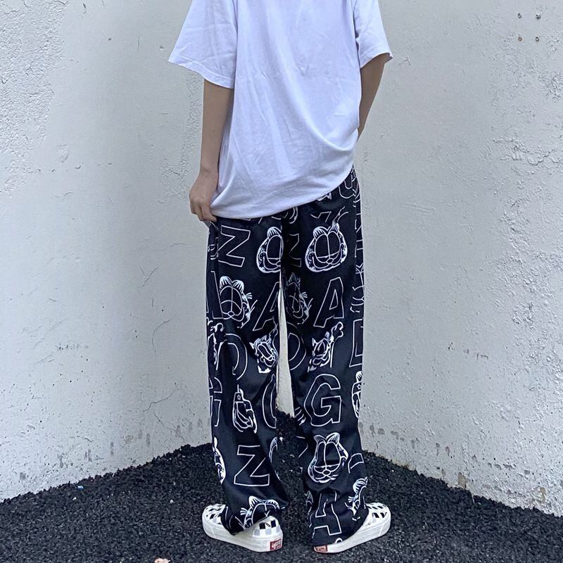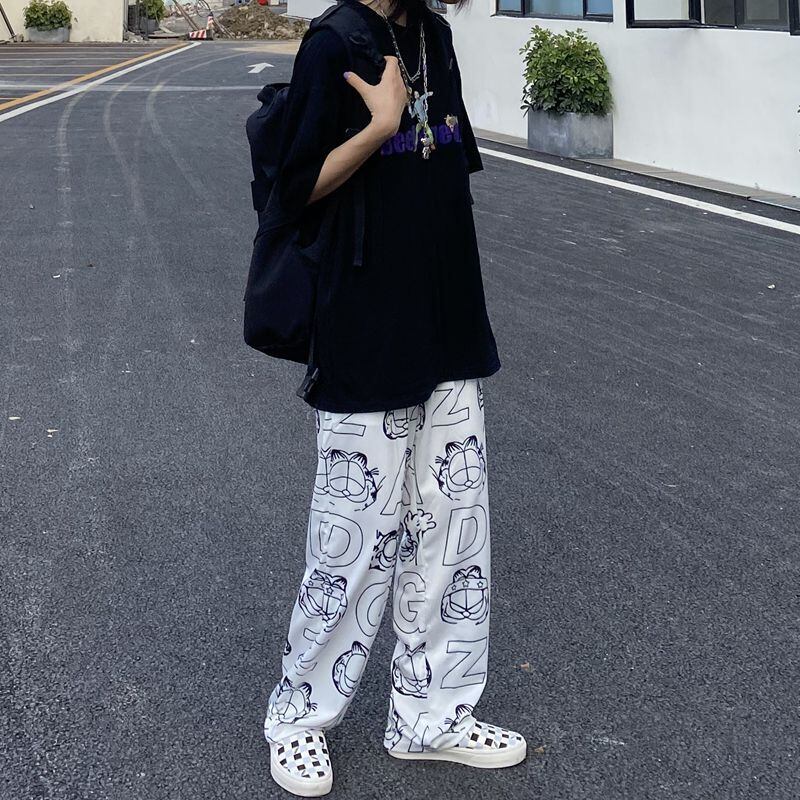 パンツ レディース夏服トレンドスタンダードプリント韓国ファッションルーズ薄手ハイウェスト レトロ 夏物 スタイル ウエスト デーモン9782370