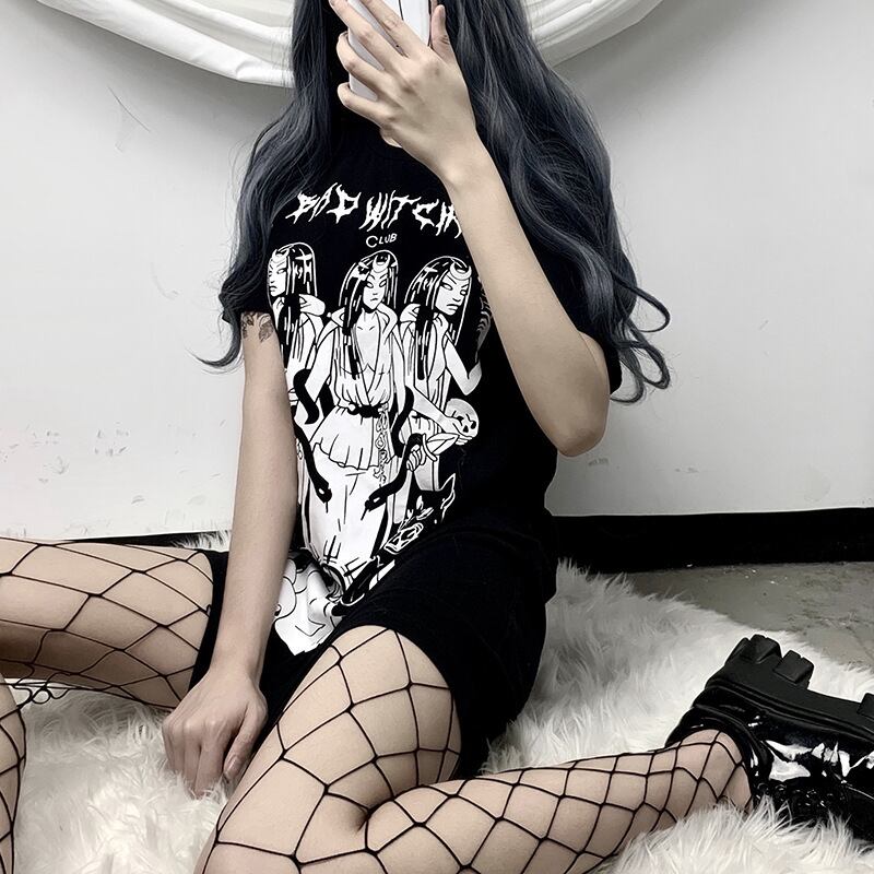 トレンドブラックTシャツレディース韓国ファッションプリント柄半袖スリーブ ショート ハーフスリーブ ストリート 大きめサイズ 原宿 YU6637733