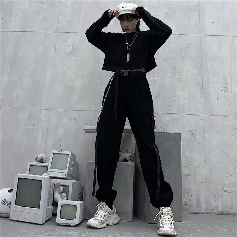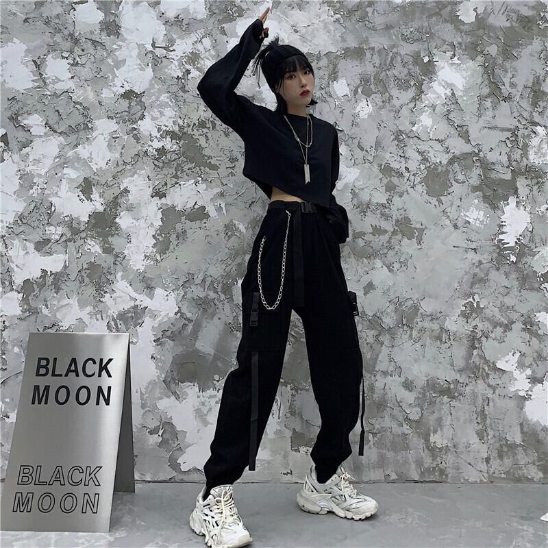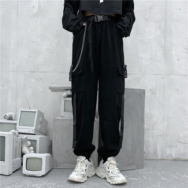 パンツ トレンドスタイルハイウェストオーバーオール ルーズレギンス カジュアルブラック 原宿 ボーイズ ウエスト デーモン3736339