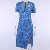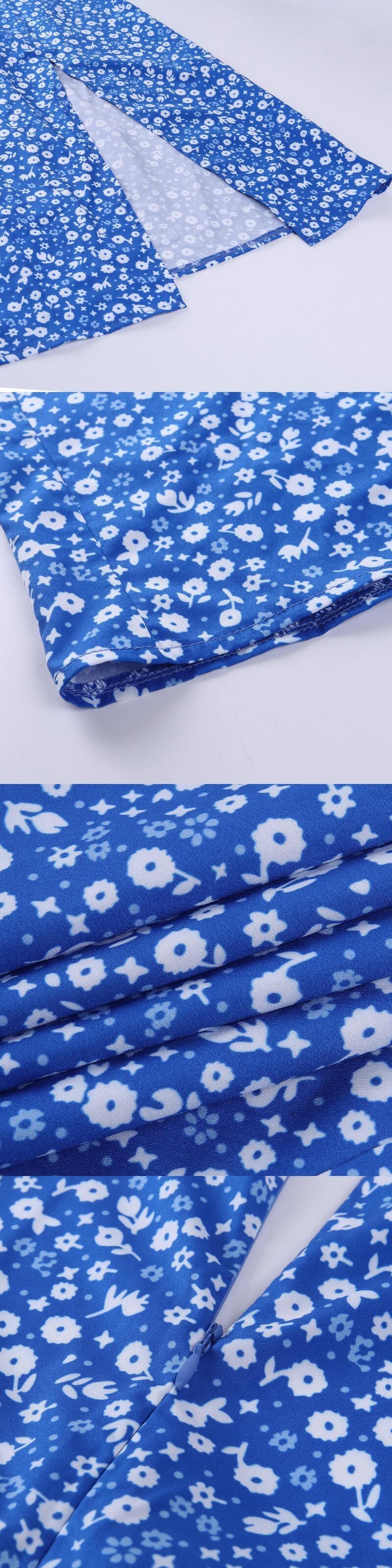 スリムフローラルスリーブワンピースロング 花柄 スカート スクウェア ヨーロピアン YU6039347