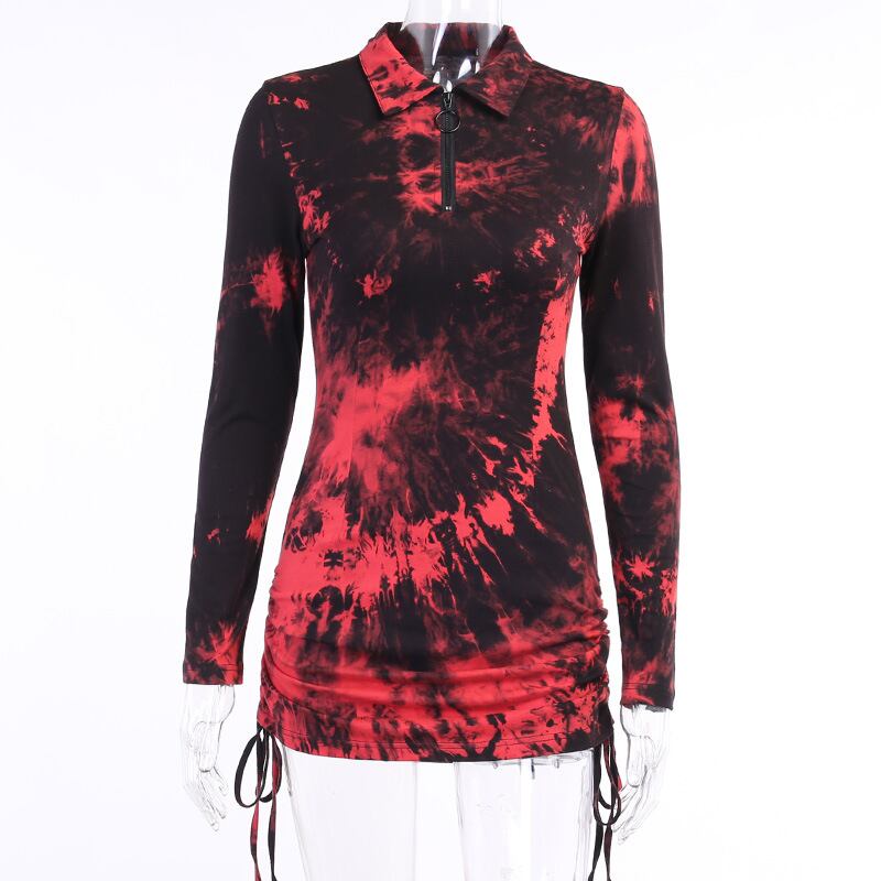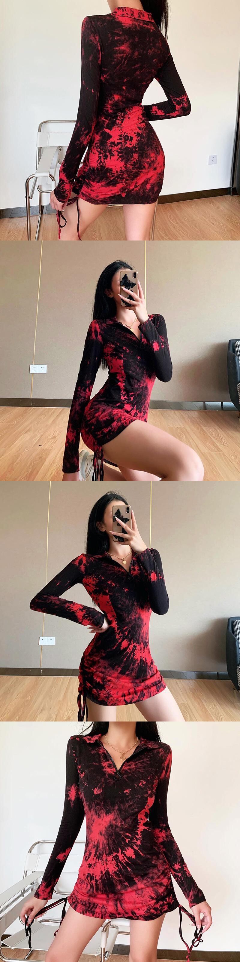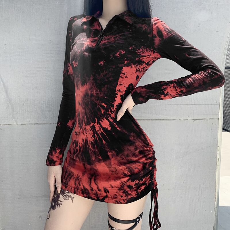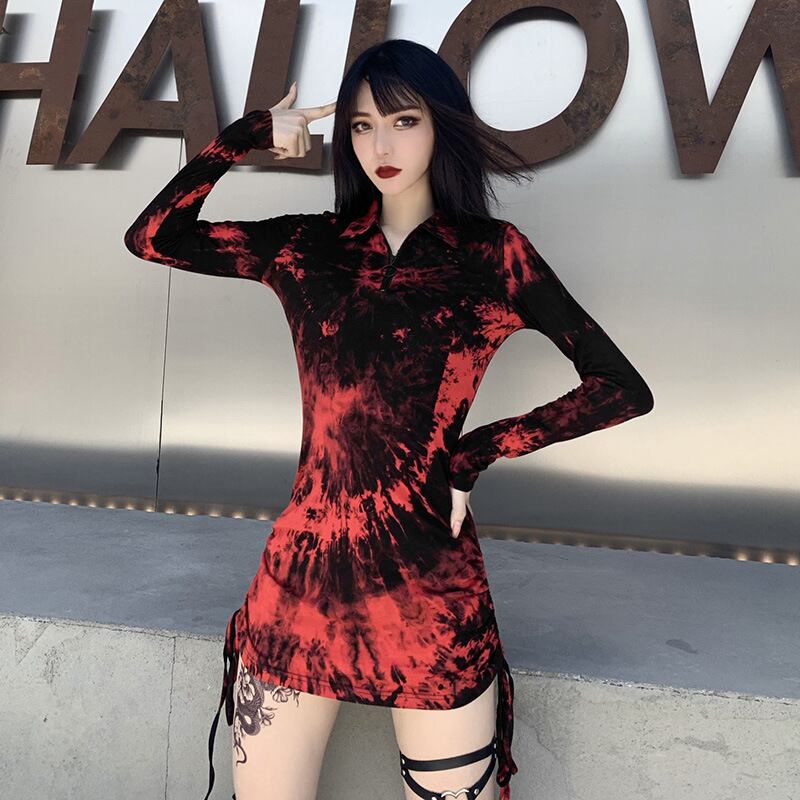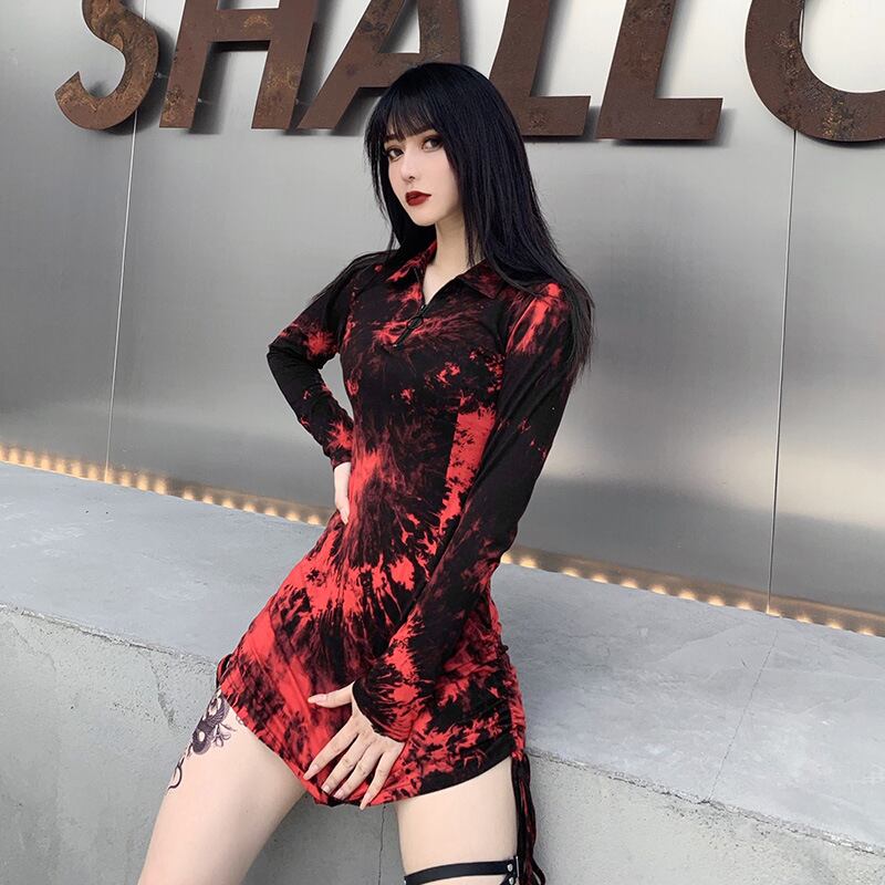 ダークトレンドギャザーワンピースレディースハイウェストウェストカラー長袖スリーブAラインスカート ロング ストリート ウエスト YU6289649