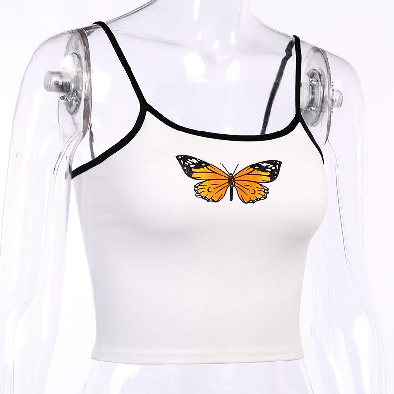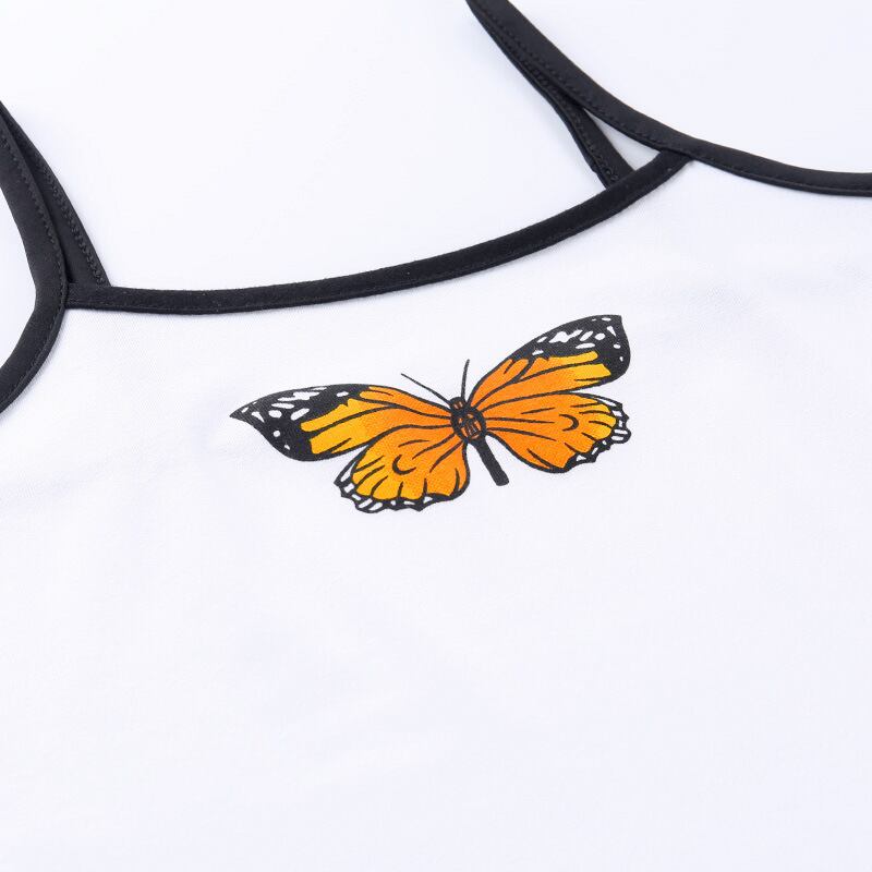 ホルターButterflyデザイン プリント柄カラースリムトップス レディース YU4757530