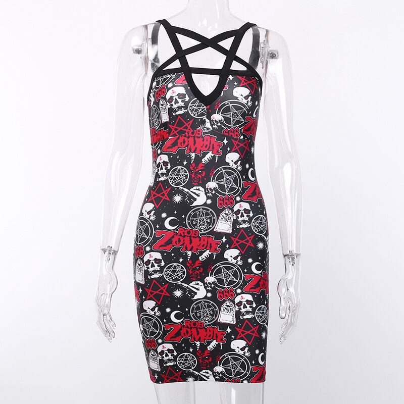 ダークプリントバックワンピースレディースヴィンテージ ストリート ビンテージ YU1186985