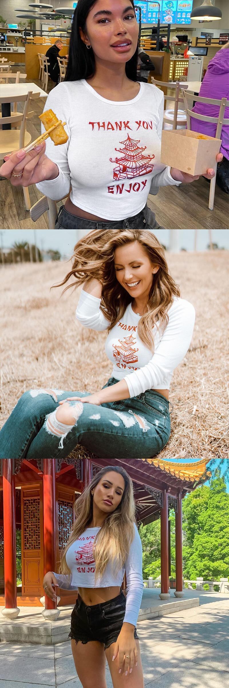 スリムTシャツレディーストレンドプリント ロング 長袖 YU1279320