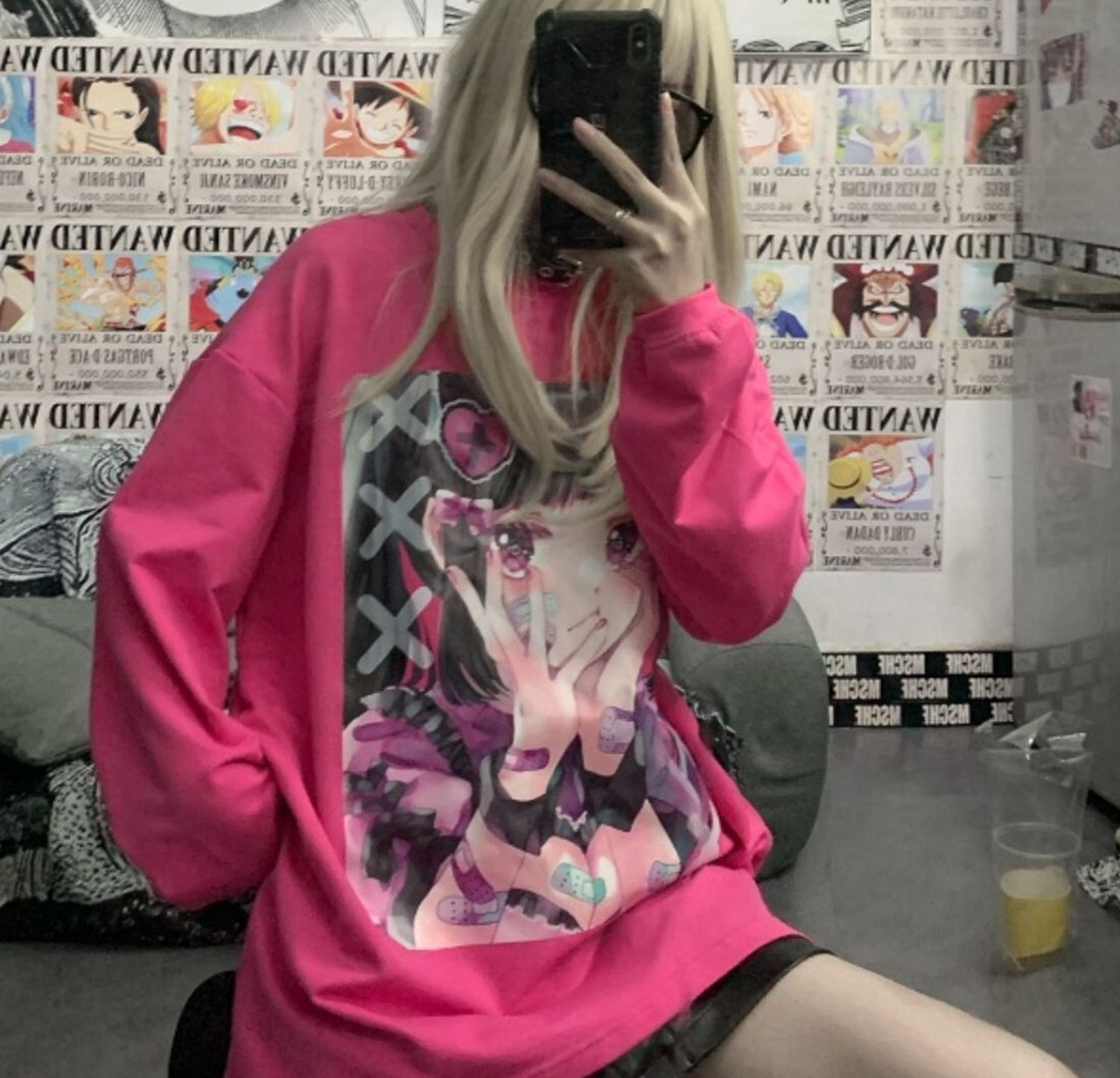 トップス オータム薄手トレンド韓国ファッションプリントルーズプルオーバー セーター ロング 原宿 秋物 長袖 デーモン5412928