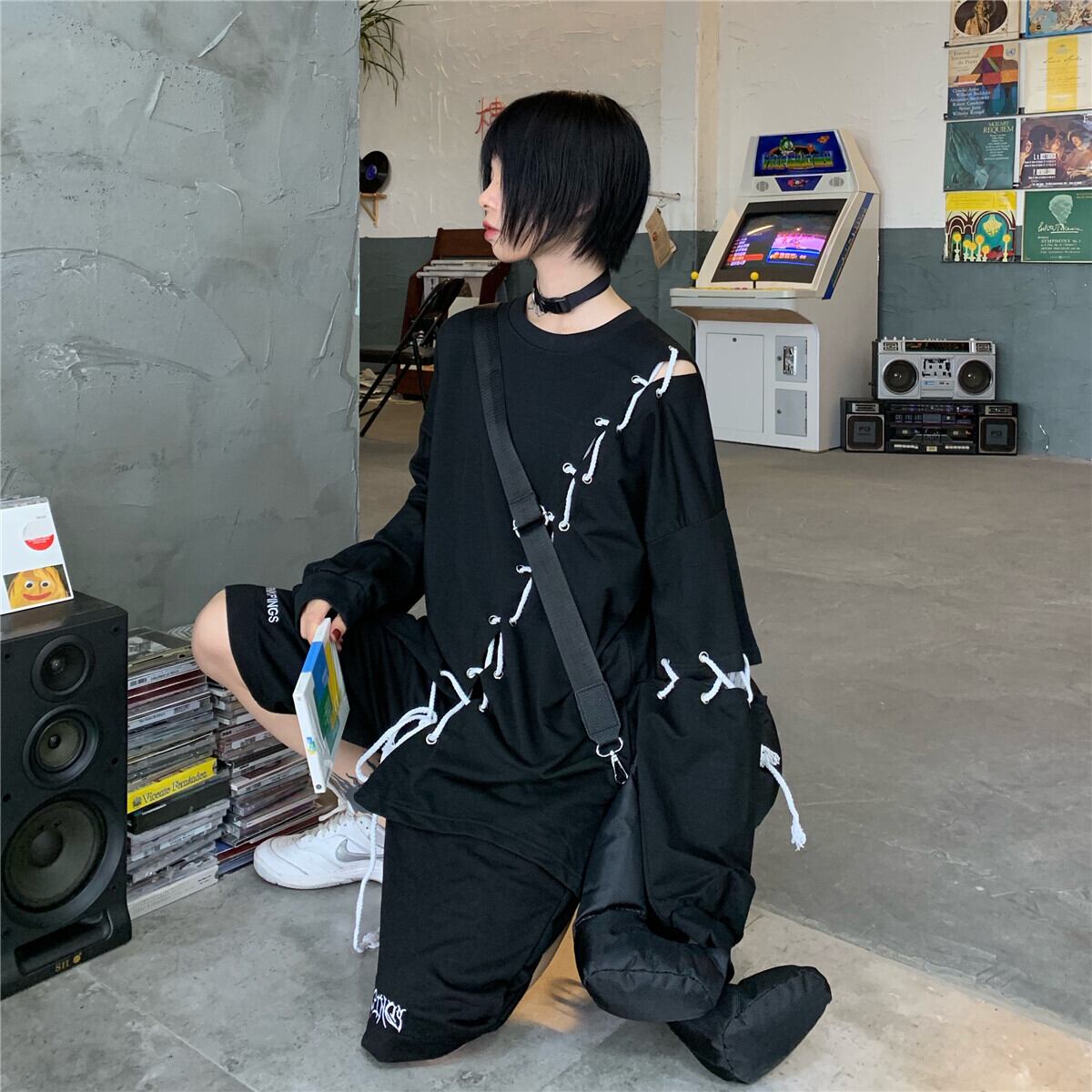 秋物ルーズカジュアルトップス 韓国ファッションスタイルトレンドTシャツレディース ロング ストリート 原宿 オータム ボーイズ 長袖 Museum0186461