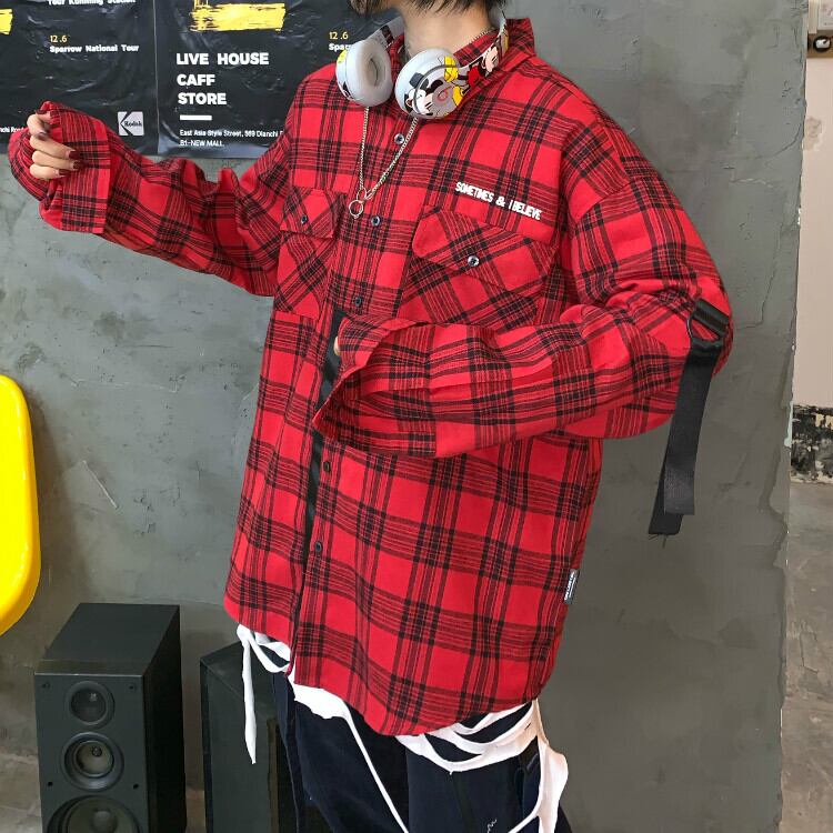 シャツ レディースルーズカジュアルジャケット 韓国ファッショントレンドスタイルスタンダード格子柄長袖スリーブ ロング レトロ ストリート 原宿 ボーイズ Museum3462417