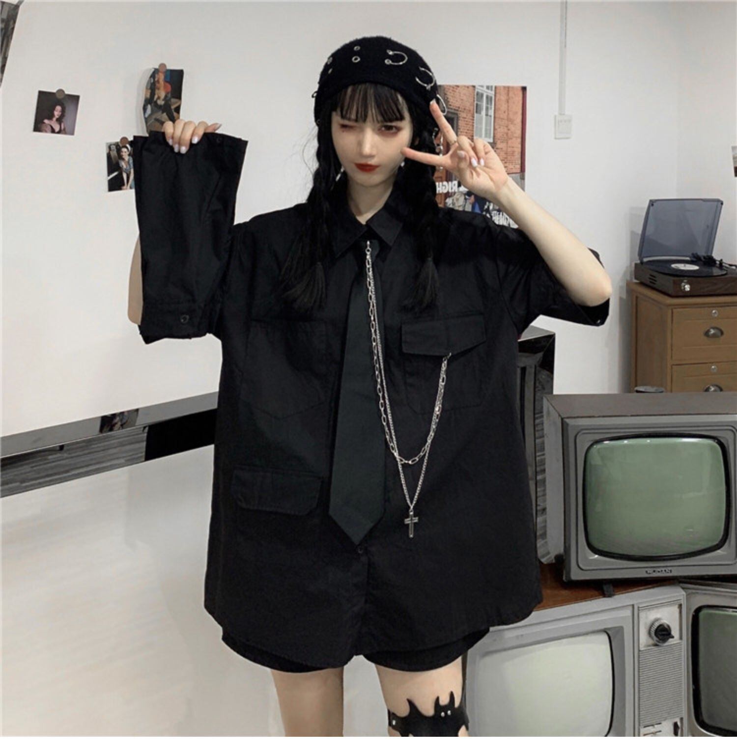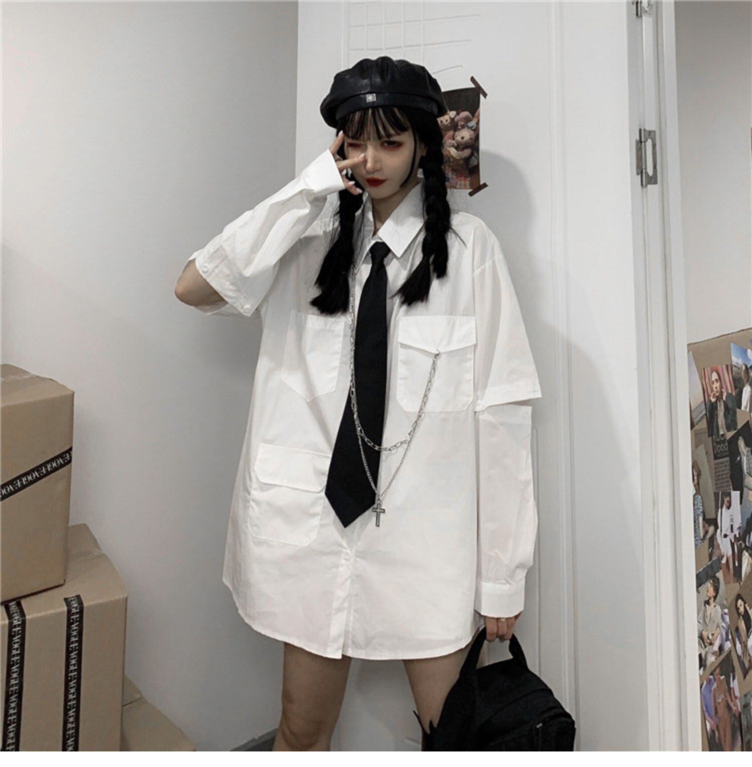 シャツ レディース韓国ファッションポケットルーズホワイトトップス ロング ボーイズ スタイル 長袖 デーモン6767684