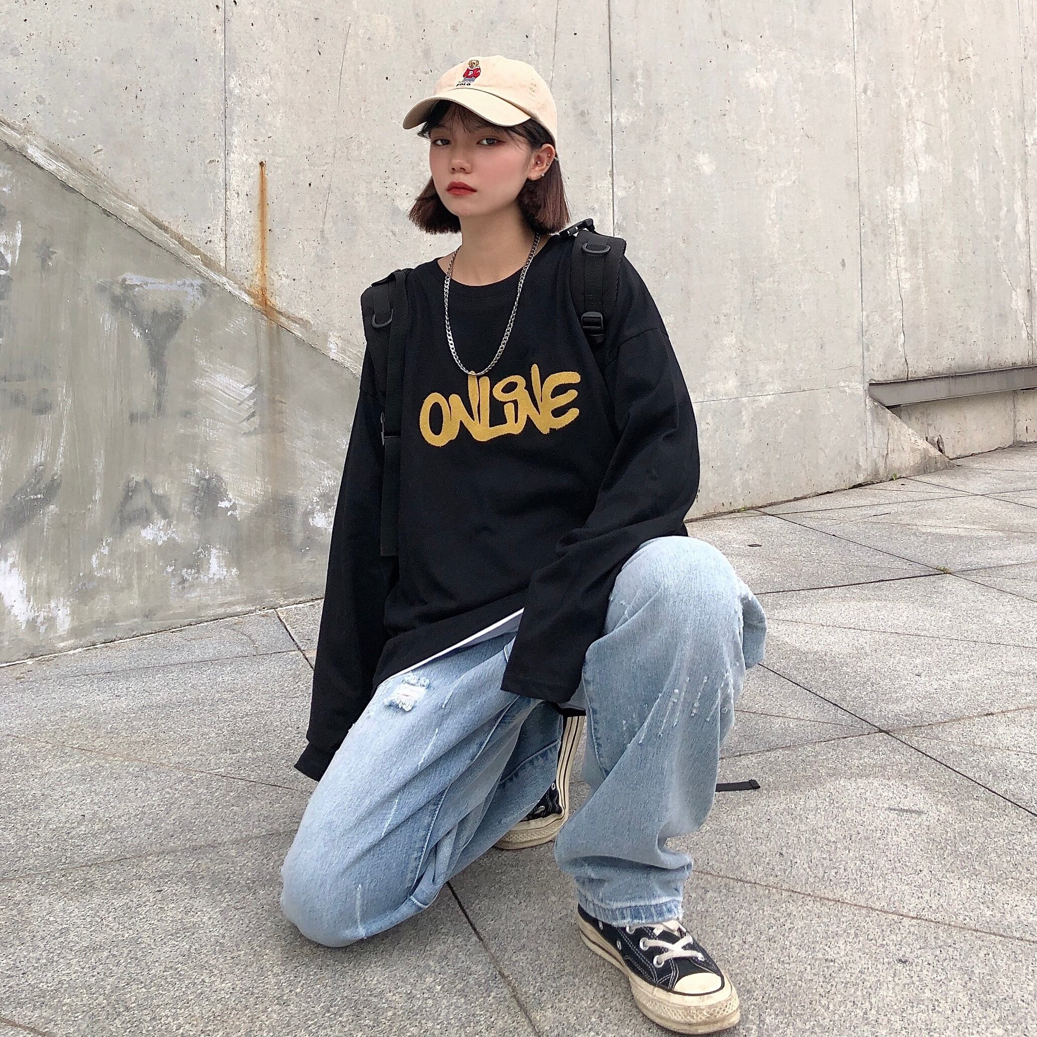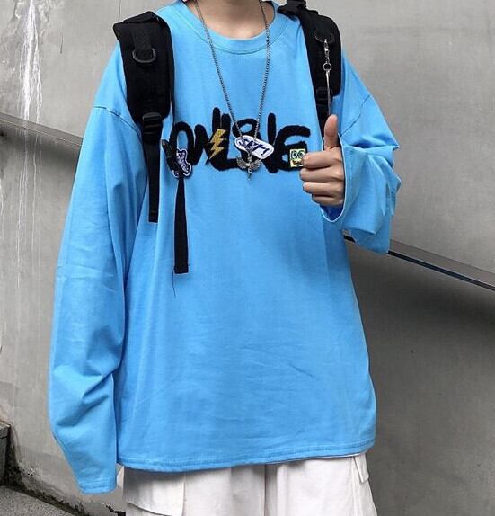 トップス オータムトレンド韓国ファッションゆったりシャツ ルーズ長袖スリーブTシャツ ロング 秋物 スタイル デーモン9970971