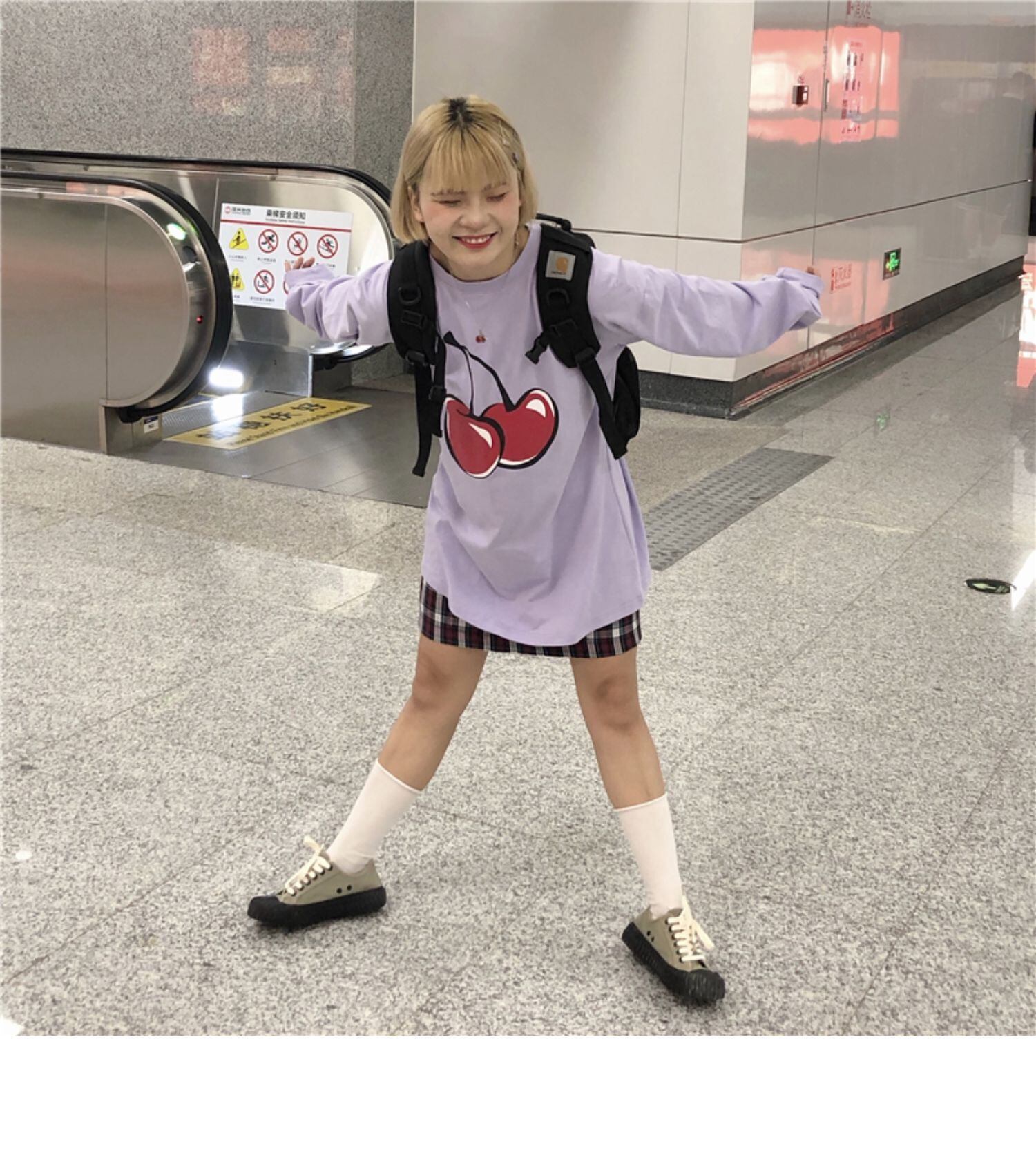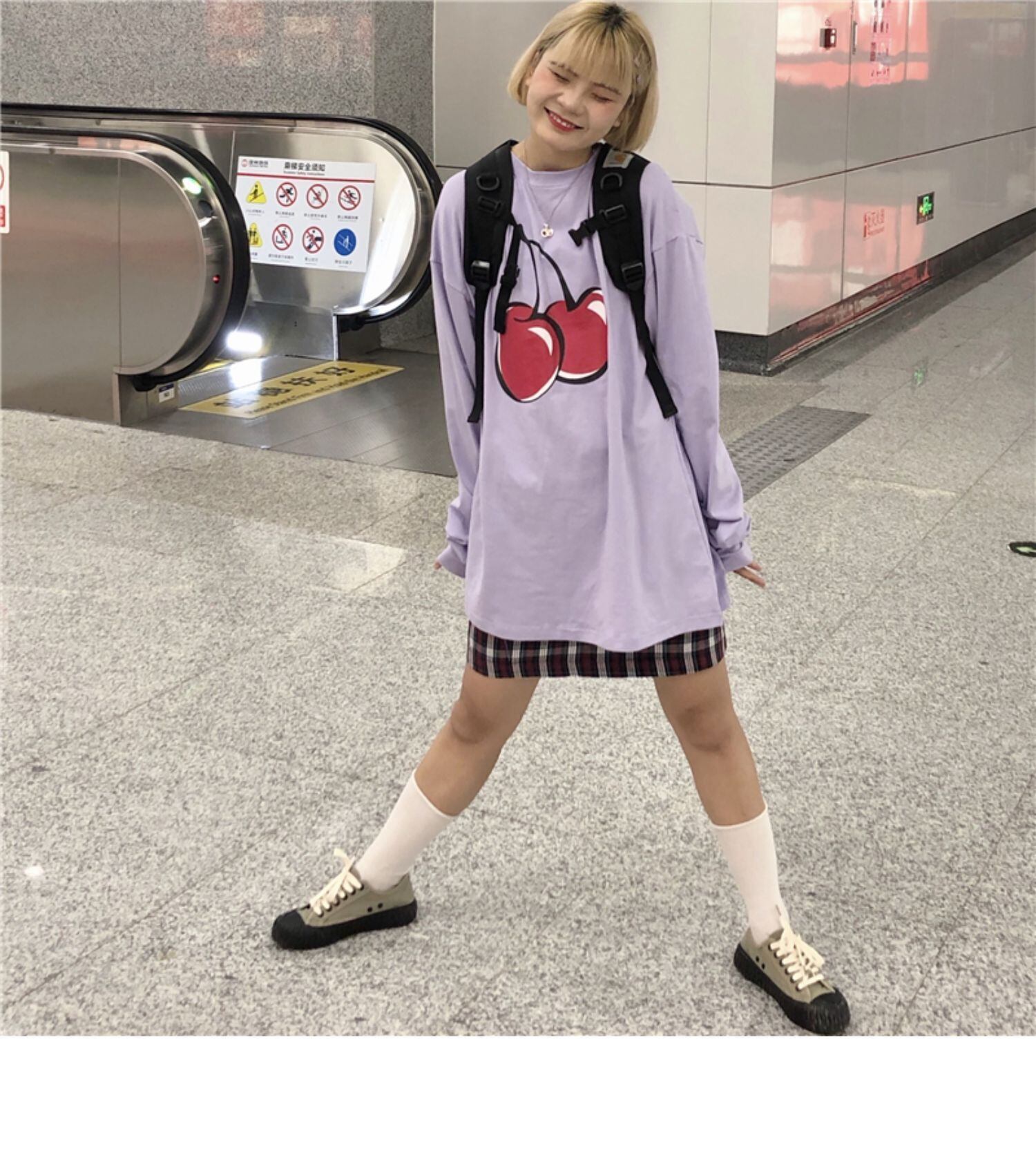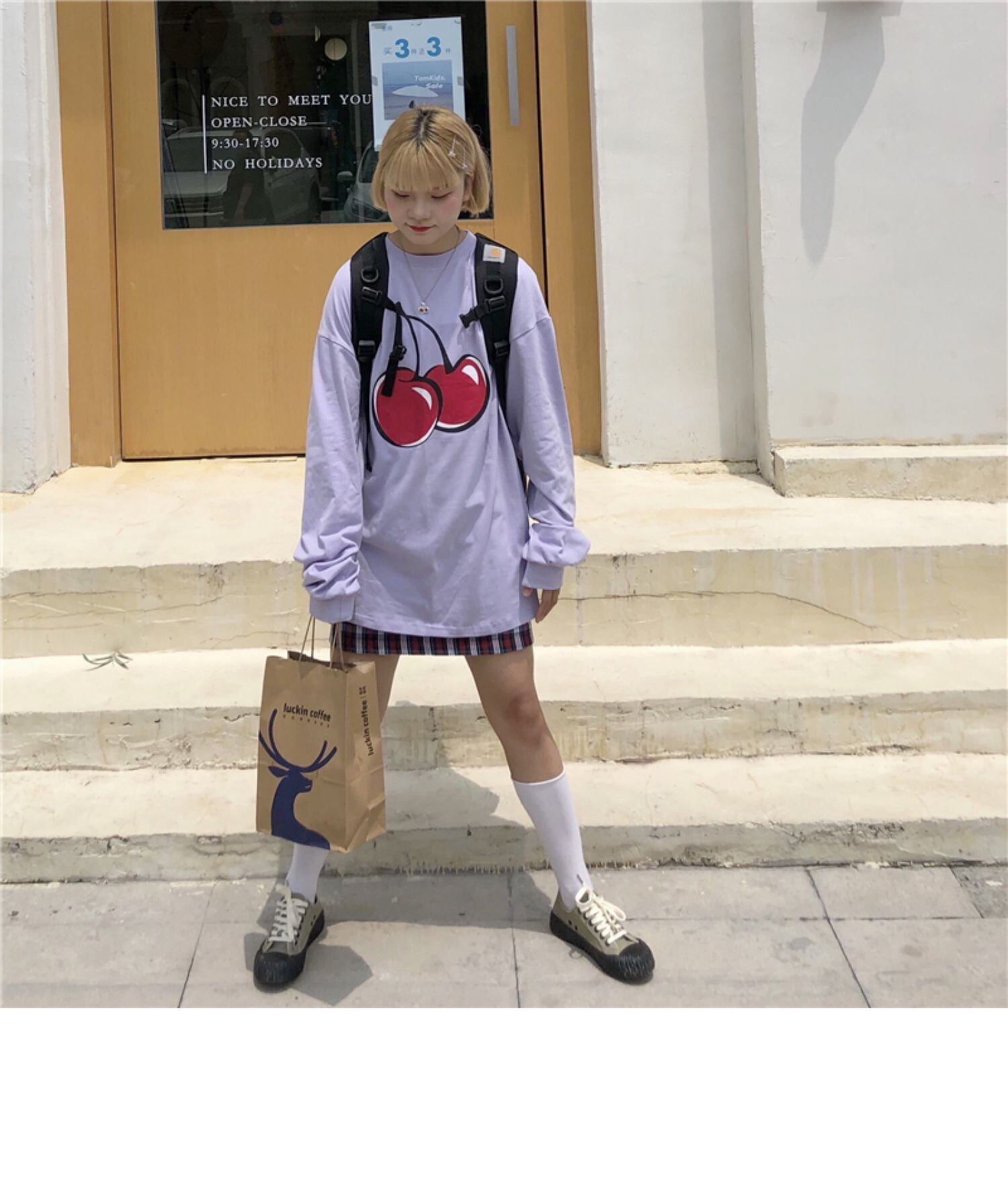 Tシャツシャツ レディースオータム韓国ファッショントレンドスタンダードプリント柄ゆったり薄手ルーズトップス ロング レトロ 秋物 スタイル 長袖 デーモン7382832