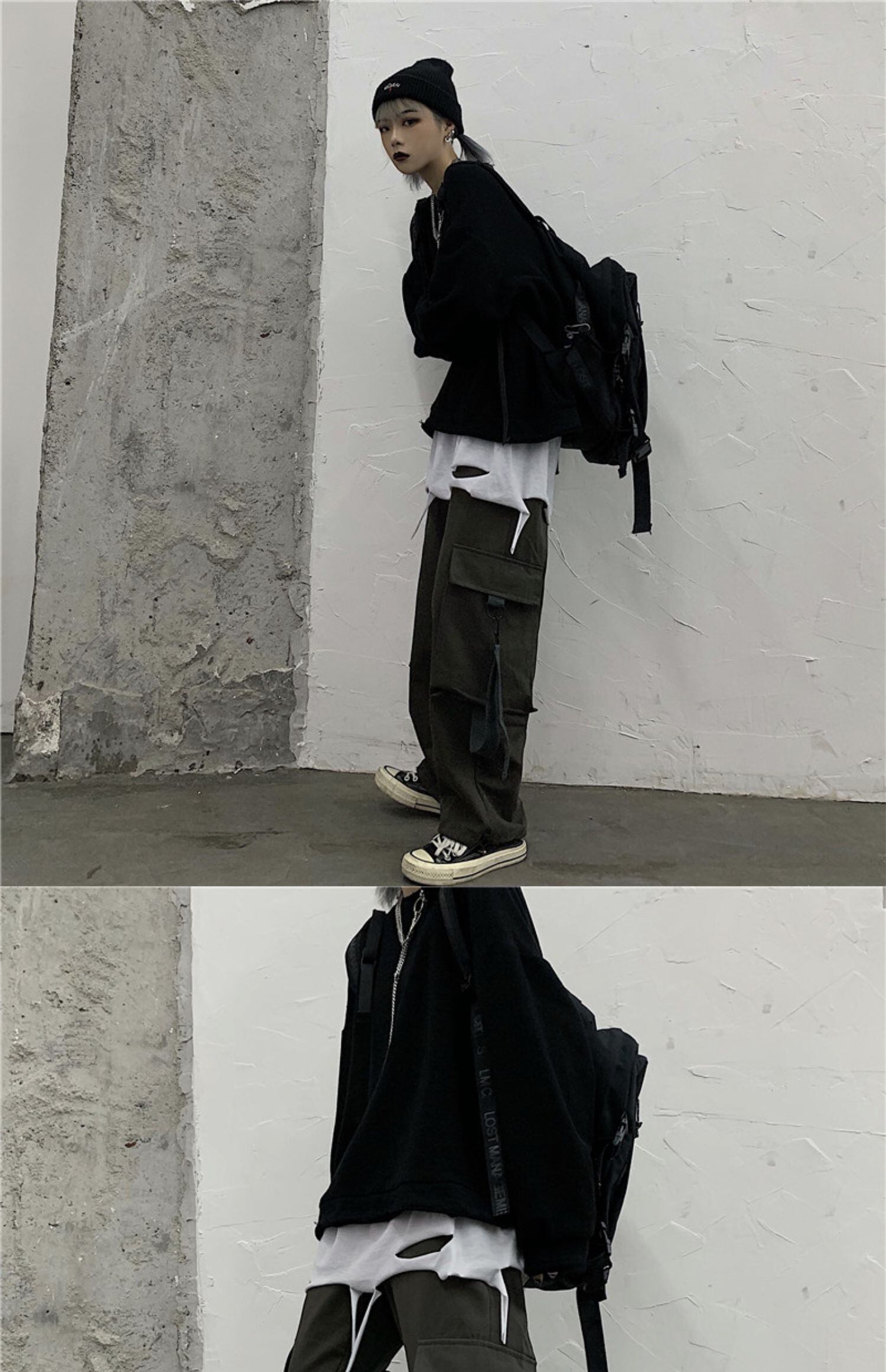 パンツ オータム韓国ファッションブラックルーズワイドレッグ薄手ハイウェストウェストスリム 秋物 ワイドパンツ ボーイズ スタイル ウエスト デーモン4754558
