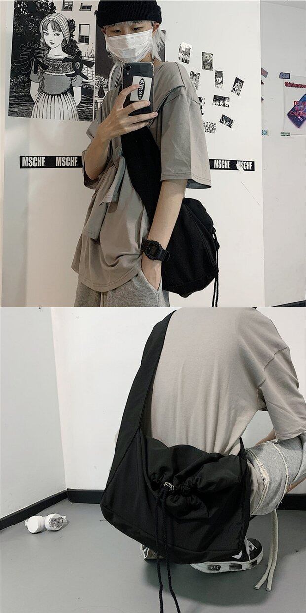 レディース韓国ファッショントレンドダークギャザーショルダーバッグブラック バックパック リュック メッセンジャーバッグ スタイル デーモン0691899